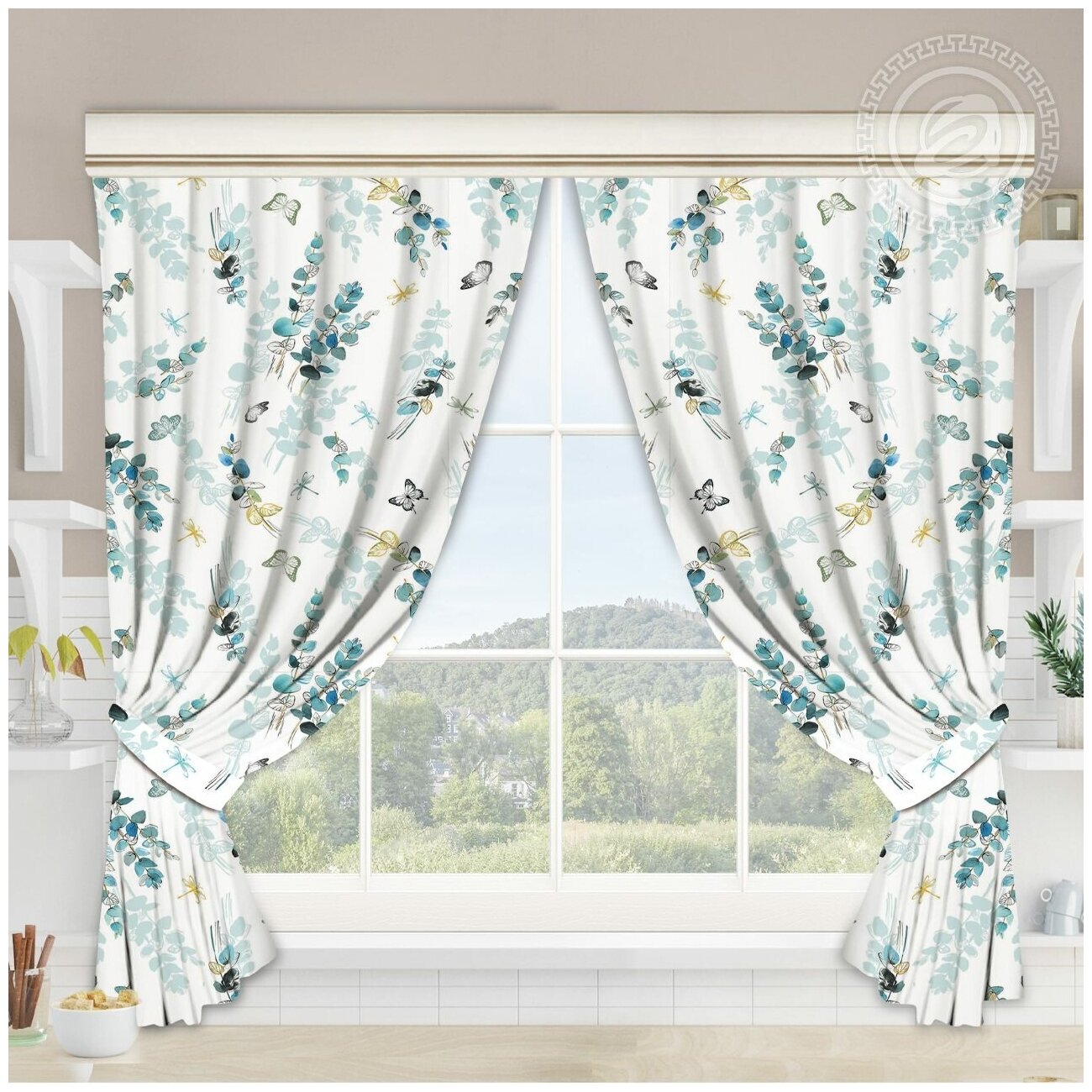 Шторы для кухни с подхватом Эвкалипт Ш.145.180 АРТ дизайн, 145*180, голубой, синий, белый 1 468 ₽