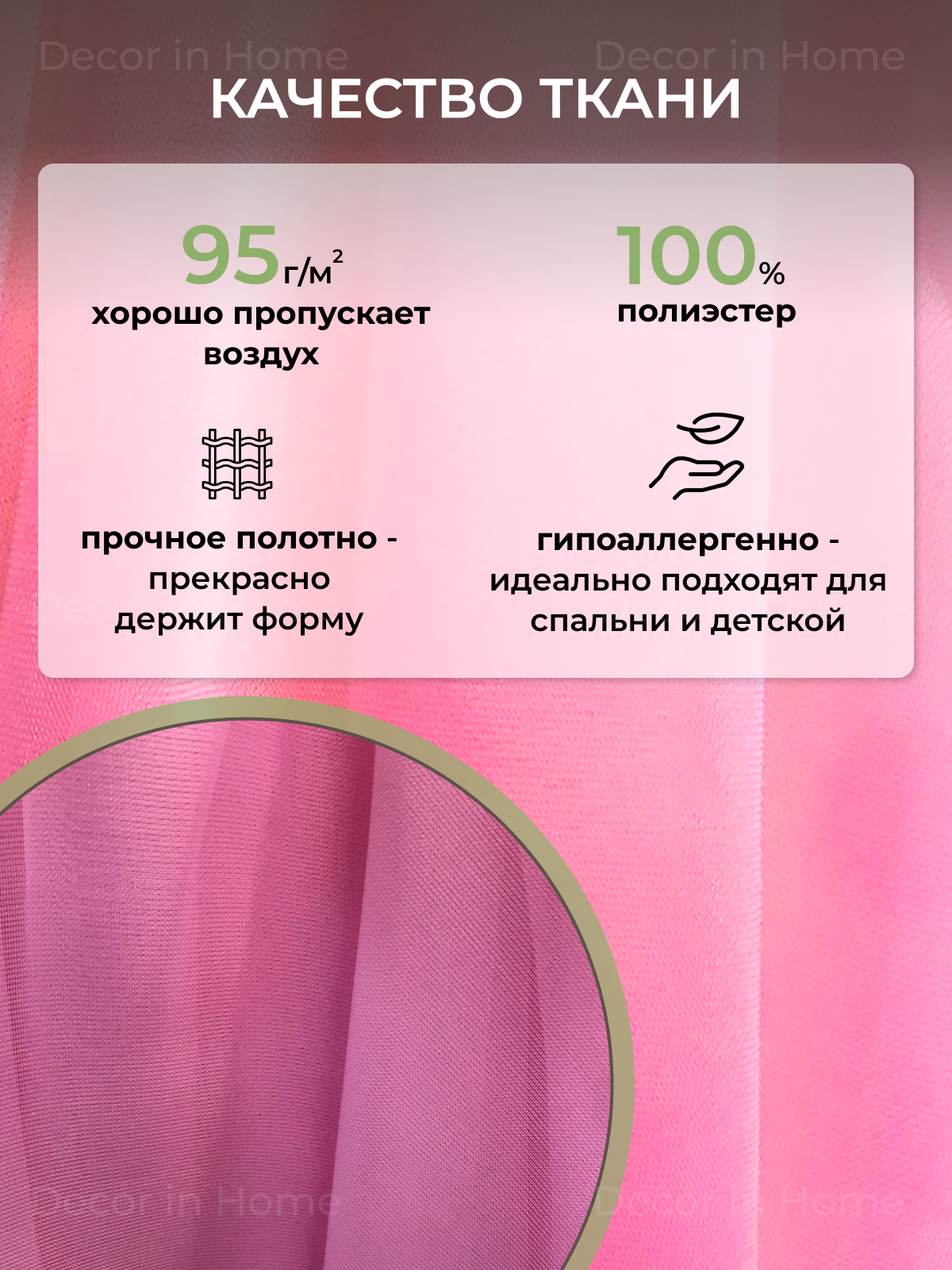 Отзывы на Тюль-Вуаль "DECOR in Home" комплект из 2 шт, розовый, ширина 150 см высота 200