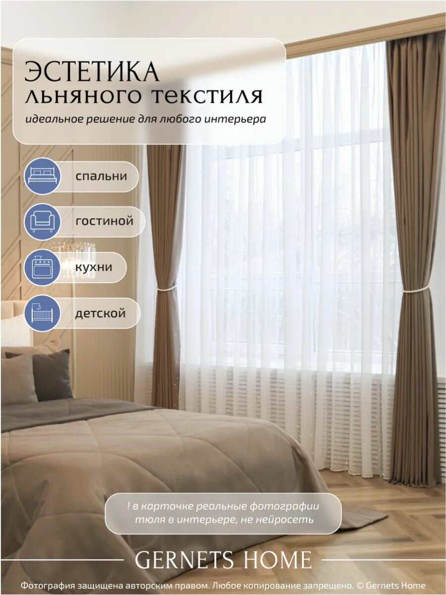 Тюль под лён ширина 300 высота 260 см белый для комнаты Gernets Home 2 636 ₽