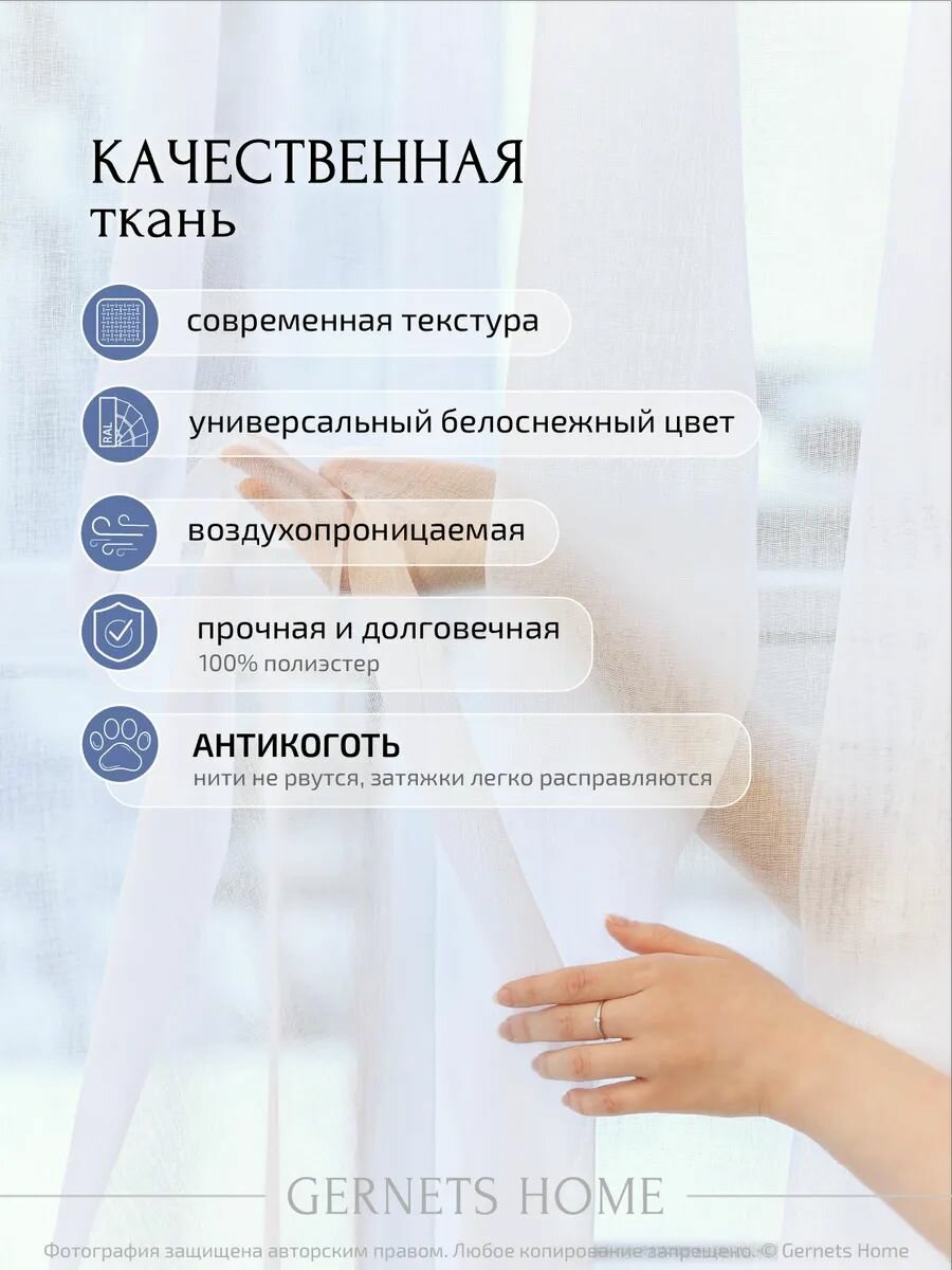 Тюль под лён ширина 300 высота 260 см белый для комнаты Gernets Home 2 636 ₽