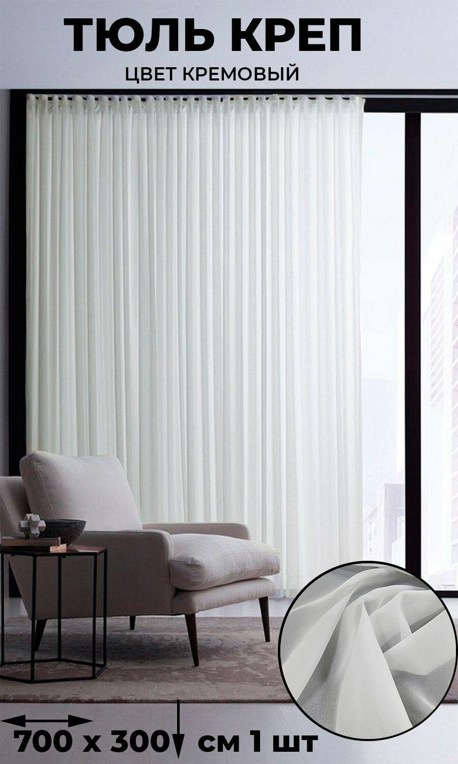 Тюль Креп Tex-Valley, ширина 300, высота 320 см, 1 шт, Кремовый 3 317 ₽
