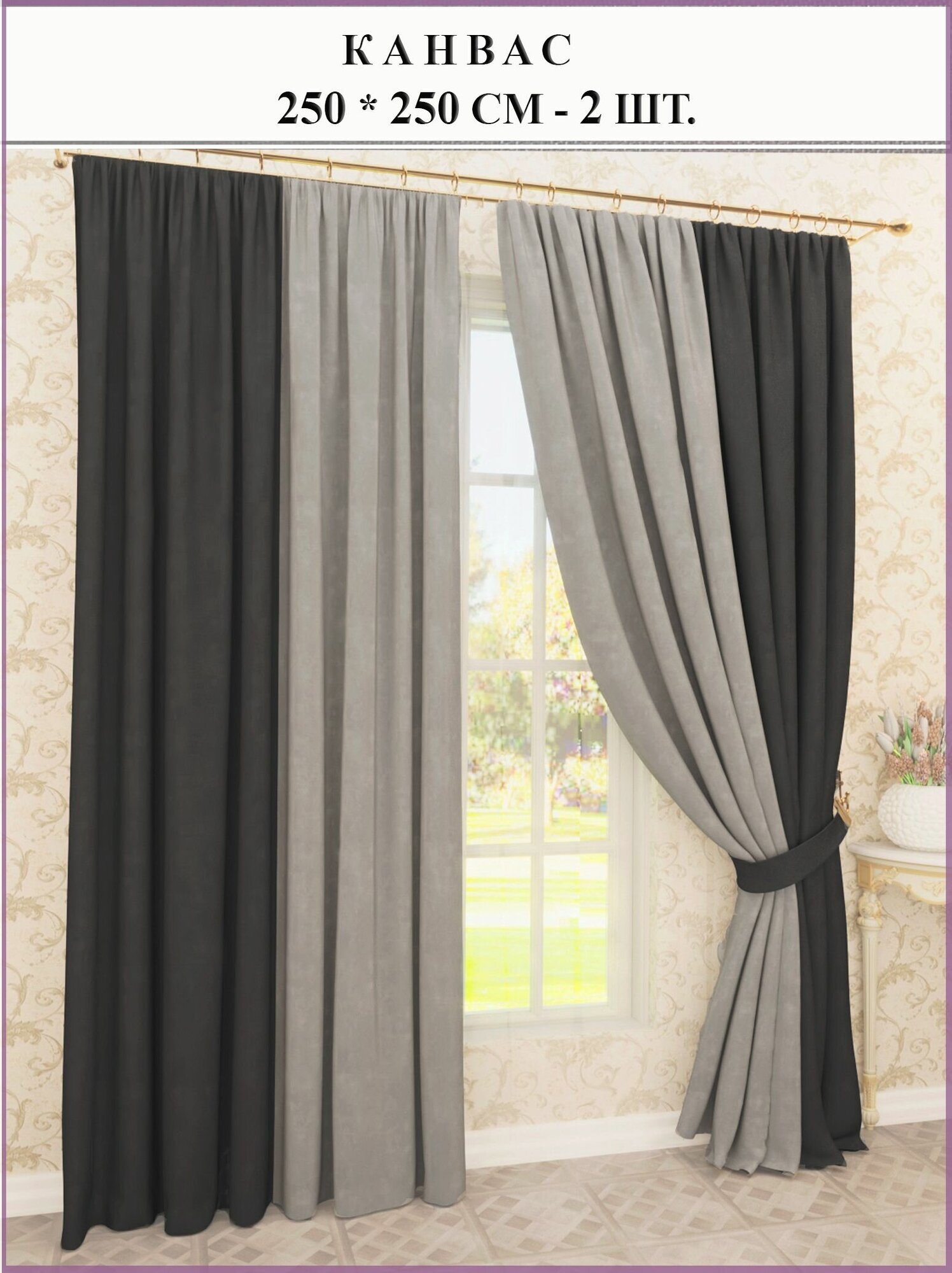 Комплект штор 250х250 см - 2шт серый/графитовый, канвас, для гостиной, для спальни, детской и кухни, плотные, ночные информация: