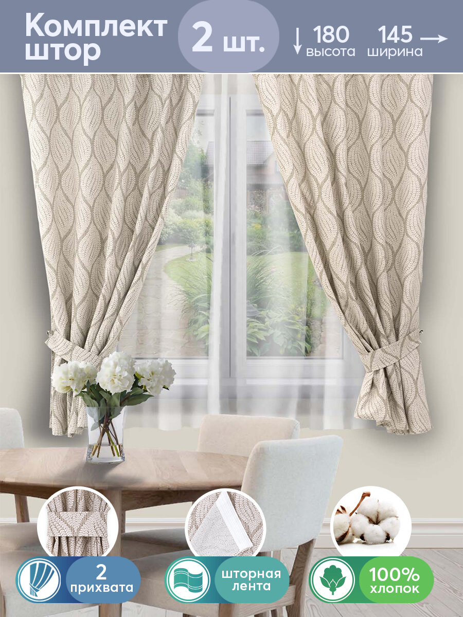 10 цен на Шторы для кухни с подхватом Сопрано Ш.145.180 АРТ дизайн, 145*180, бежевый