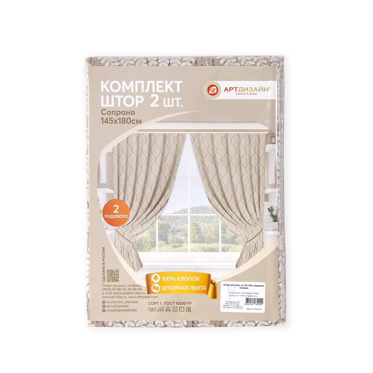 Шторы для кухни с подхватом Сопрано Ш.145.180 АРТ дизайн, 145*180, бежевый информация: