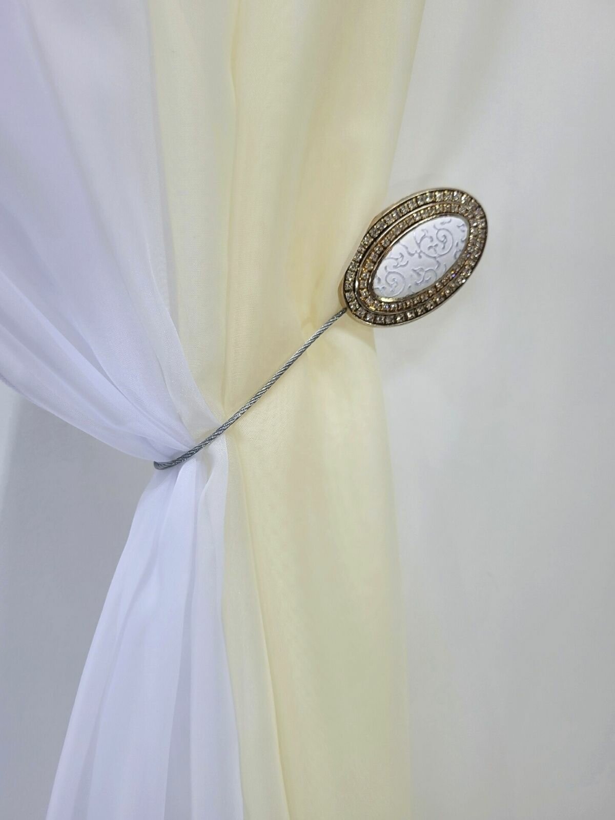 Шторы для комнаты комплект тюль вуаль "Радуга" бежевый/молочный, высота 250см 3 190 ₽