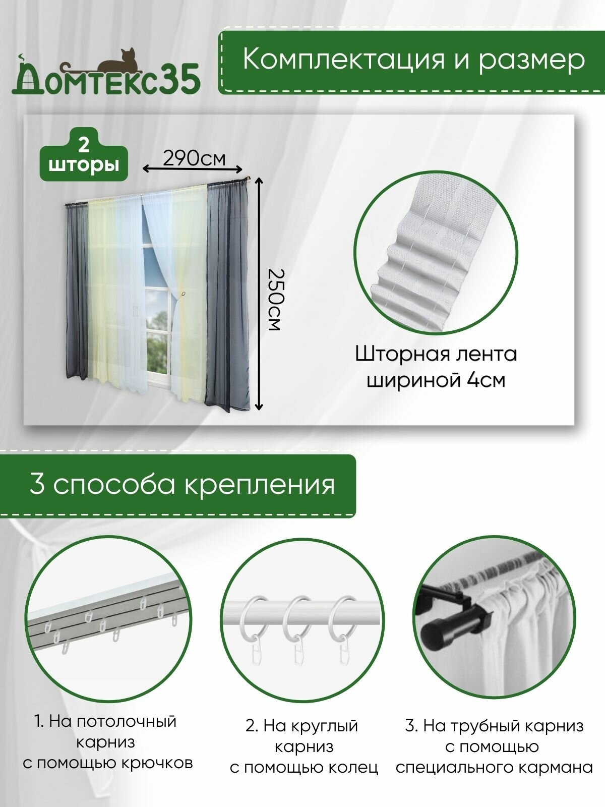Шторы для комнаты комплект тюль вуаль "Радуга" голубой/серый, высота 250см 3 100 ₽