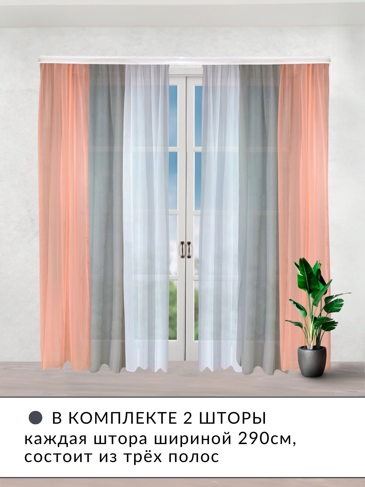 10 цен на Шторы для комнаты с разрезами вуаль Домтекс35 "Радуга" коралловый/серый/белый, высота 250см