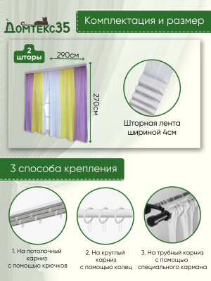 Отзывы на Шторы для комнаты комплект тюль вуаль "Радуга" фиолетовый/желтый, высота 270см