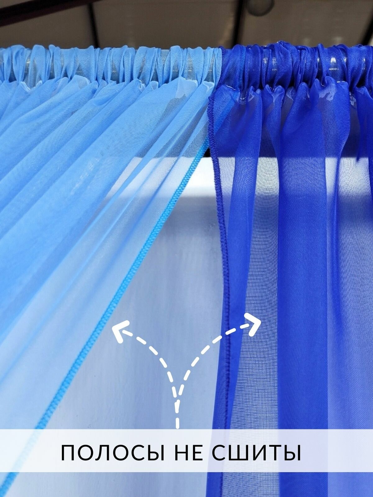 Шторы для комнаты комплект тюль вуаль "Радуга" синий/голубой, высота 250см информация: