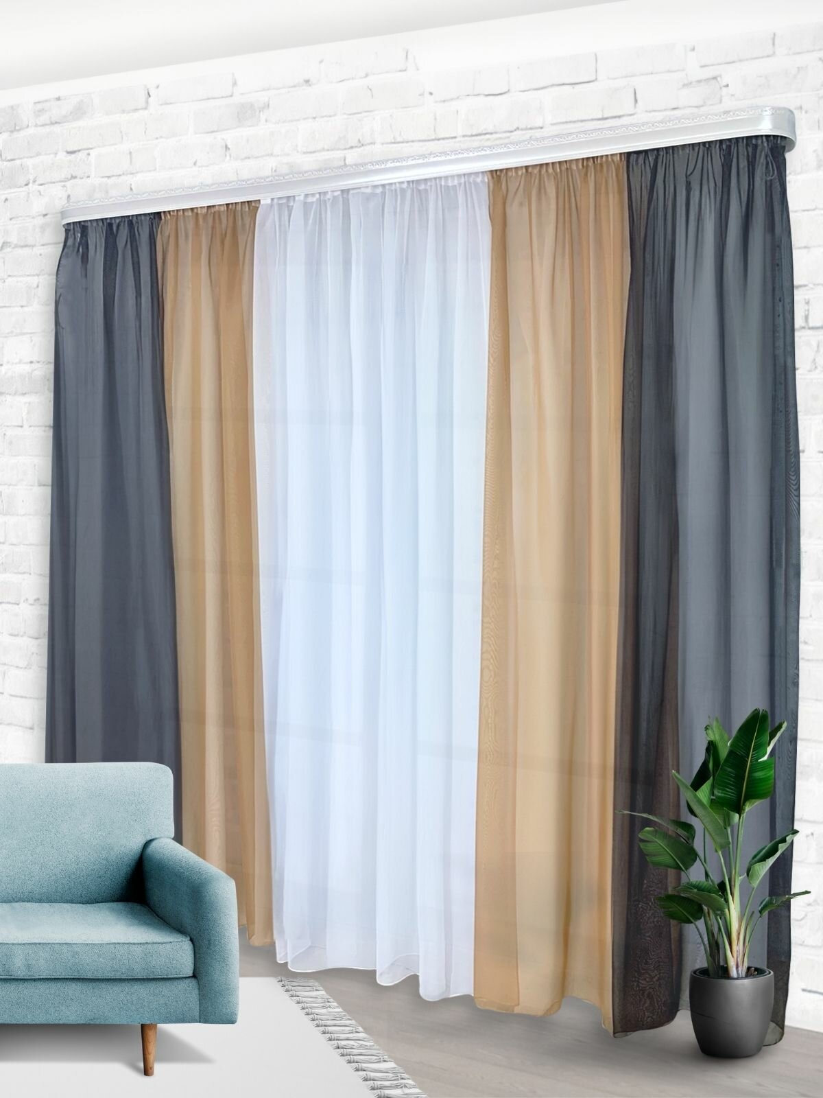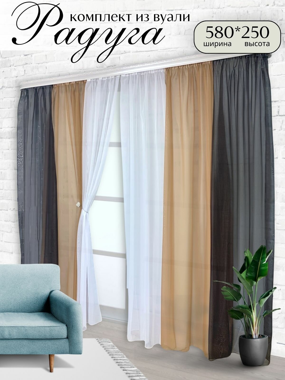 Отзывы на Шторы для комнаты комплект тюль вуаль "Радуга" венге/бежевый, высота 250см