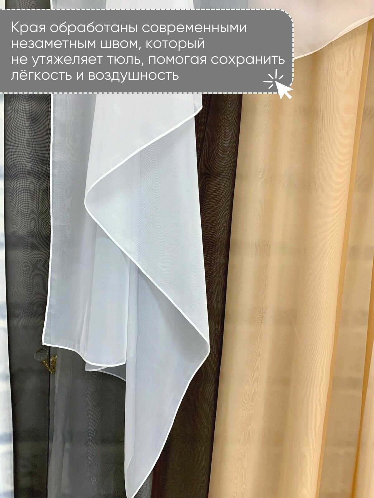 Тюль вуаль в спальню и гостиную длинная 200х240 см белая