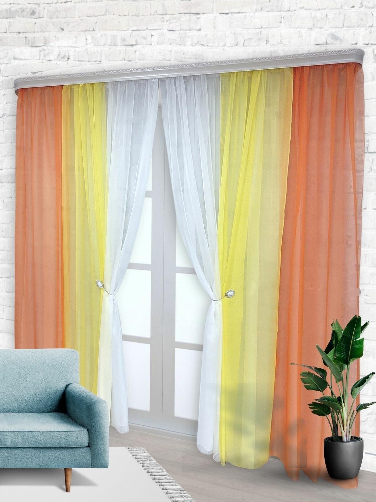 Отзывы на Шторы для комнаты комплект тюль вуаль Виольга "Радуга" оранжевый/желтый, высота 250см