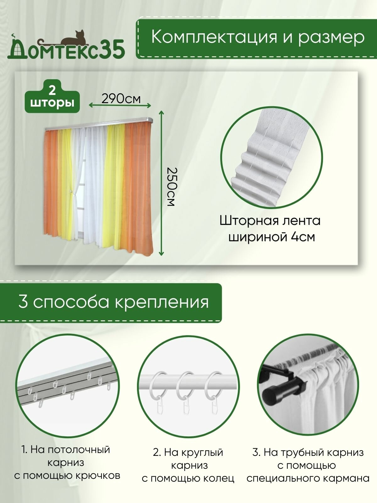 Шторы для комнаты комплект тюль вуаль Виольга "Радуга" оранжевый/желтый, высота 250см информация:
