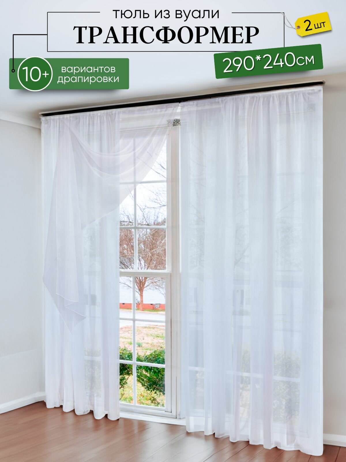 Шторы для комнаты комплект тюль вуаль "Радуга" белый, высота 230см 3 190 ₽