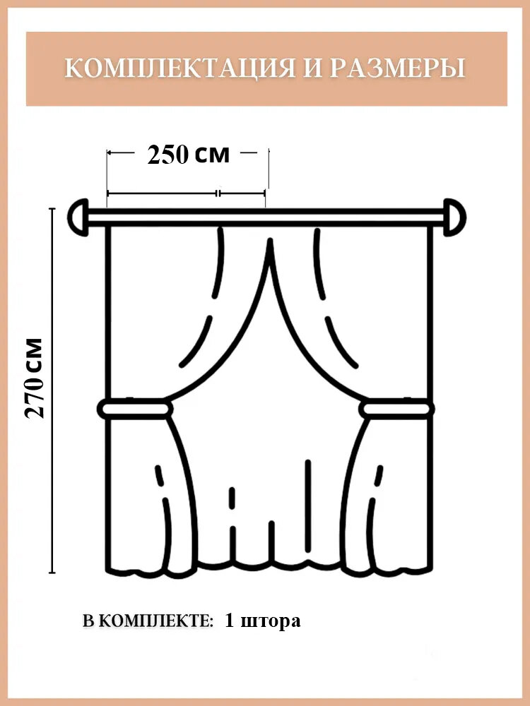 Штора для комнаты 250 х 290 см (1шт.) бежевая, в спальню и гостиную, на кухню информация: