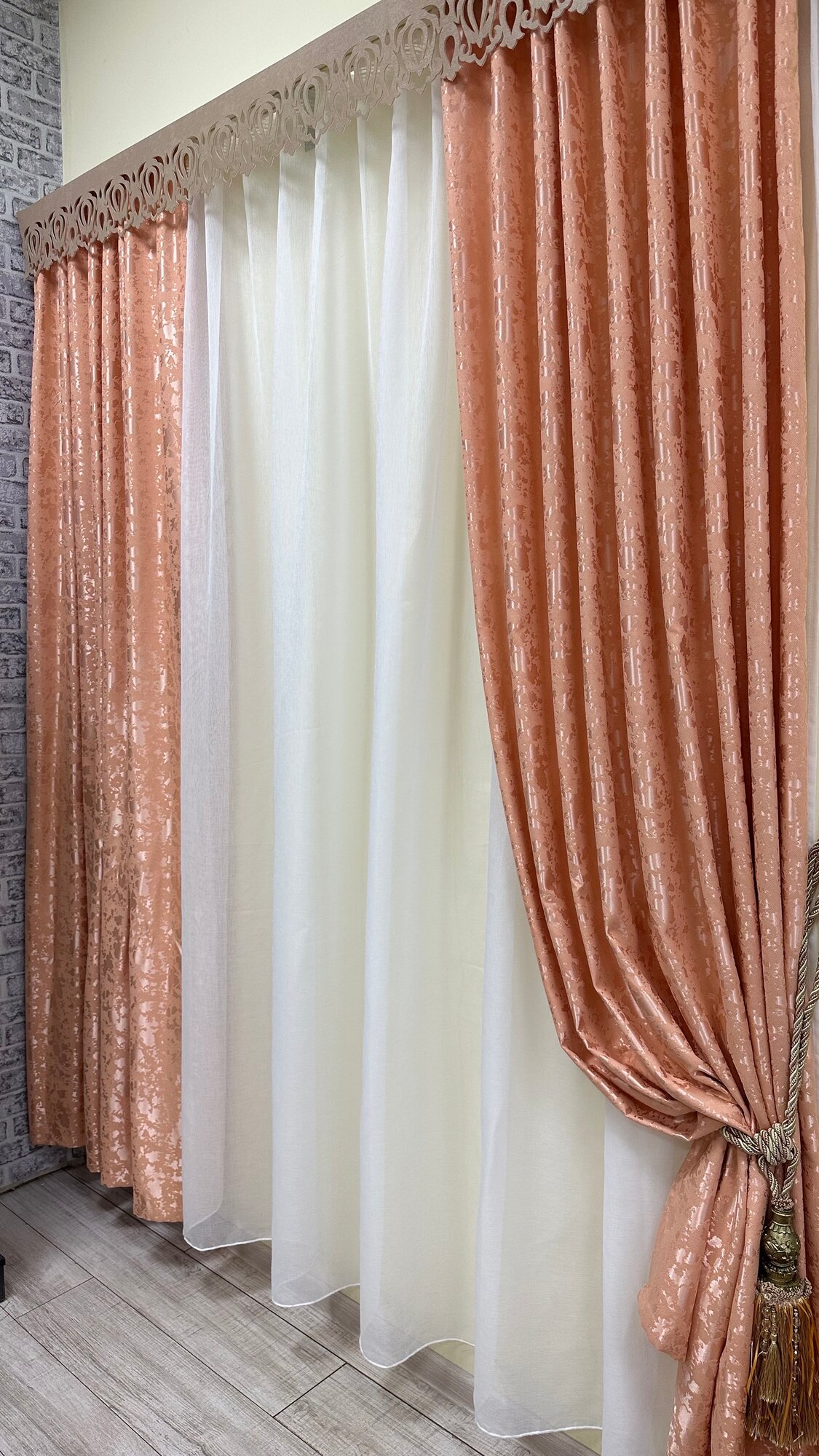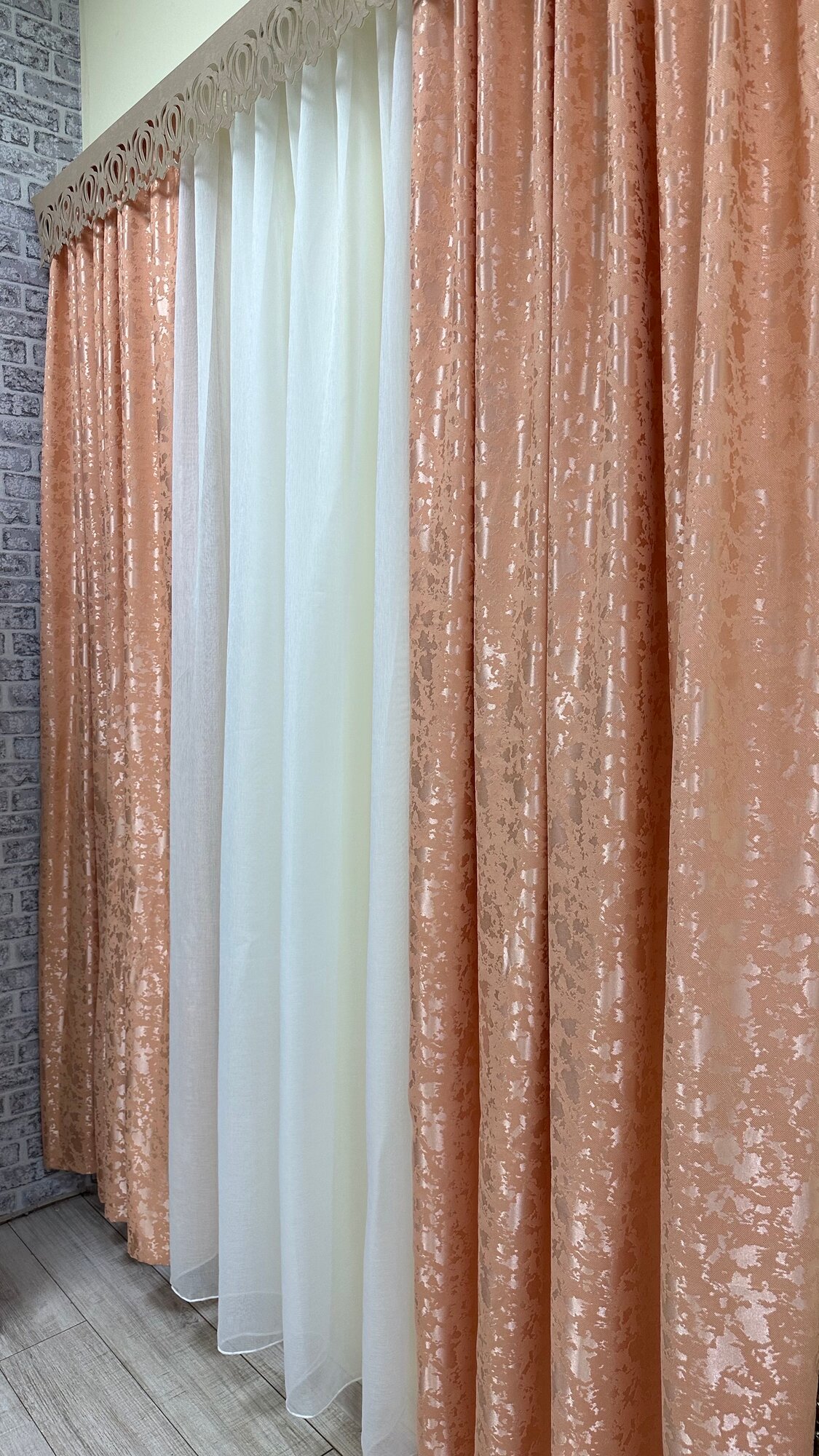 Портьеры канвас мрамор персиковые, ширина 3м, высота 2,7м информация: