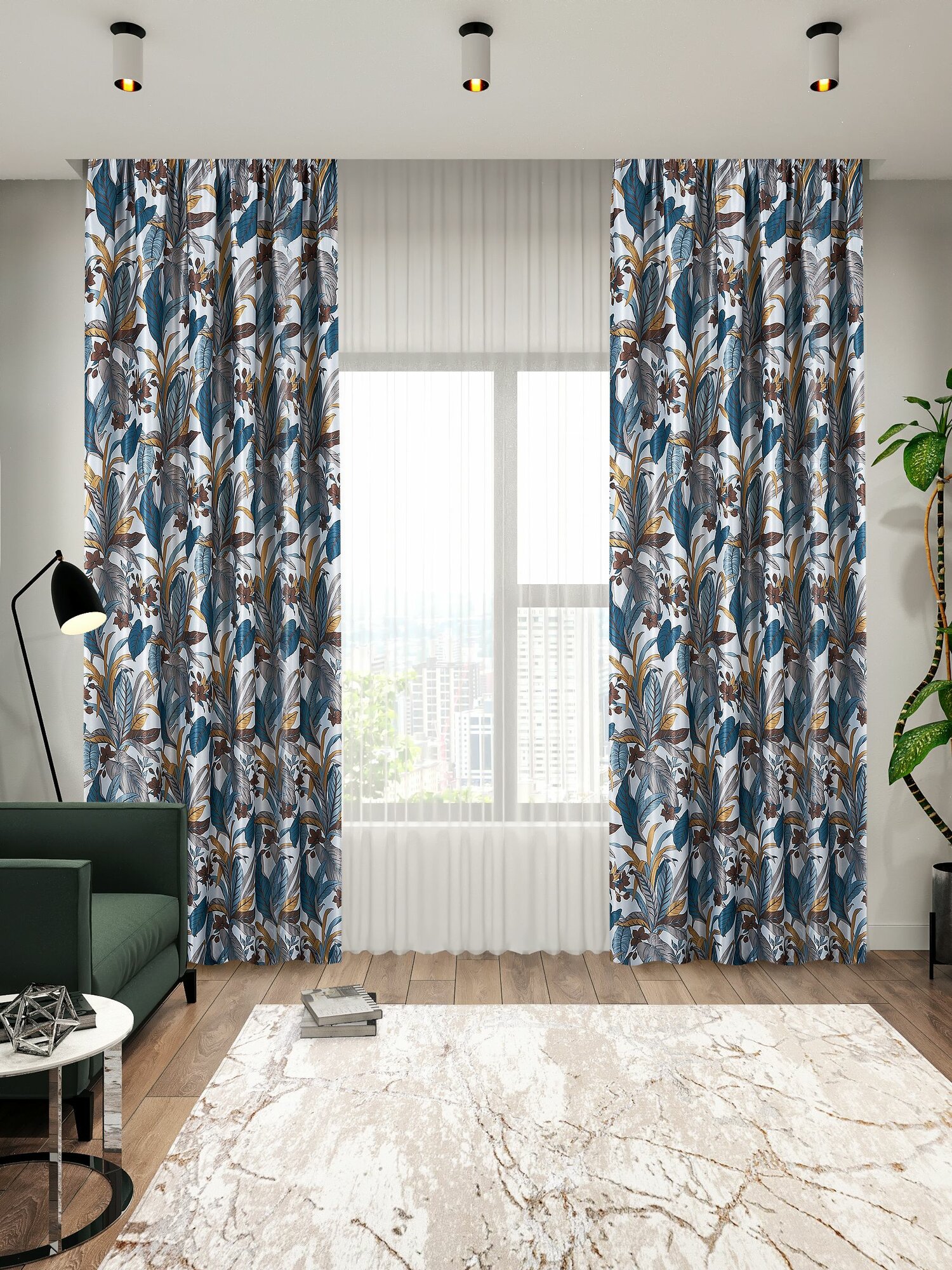 Комплект штор блэкаут 400х270 2 шт по 200 см , IDEA HOME / затемнение более 90% , рогожка синий цветочный принт 3 832 ₽