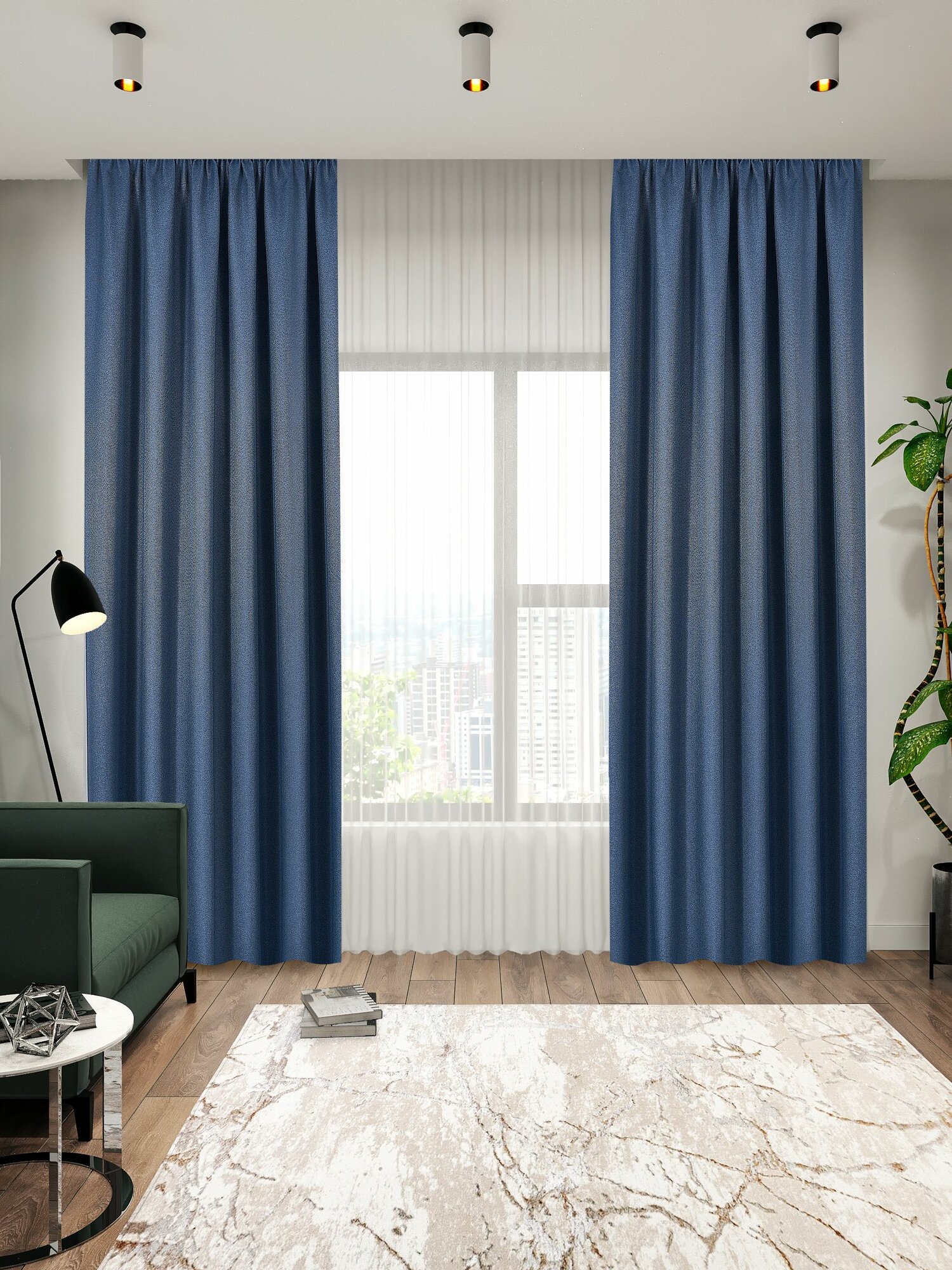Комплект штор блэкаут 400х240 2 шт по 200 см , IDEA HOME / затемнение более 90% , рогожка однотонный синий информация:
