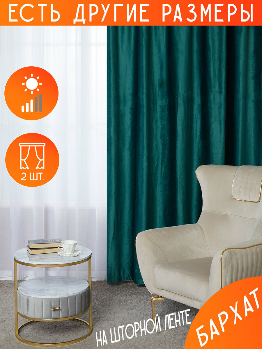 Отзывы на Готовый комплект плотных интерьерных штор(портьер) бархат (2 шт, каждая штора 200x240 см) со шторной лентой