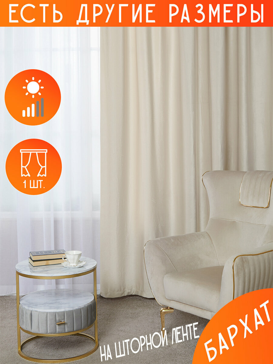 Отзывы на Готовая плотная интерьерная штора(портьера) бархат 300x250 см.(1шт.) со шторной лентой