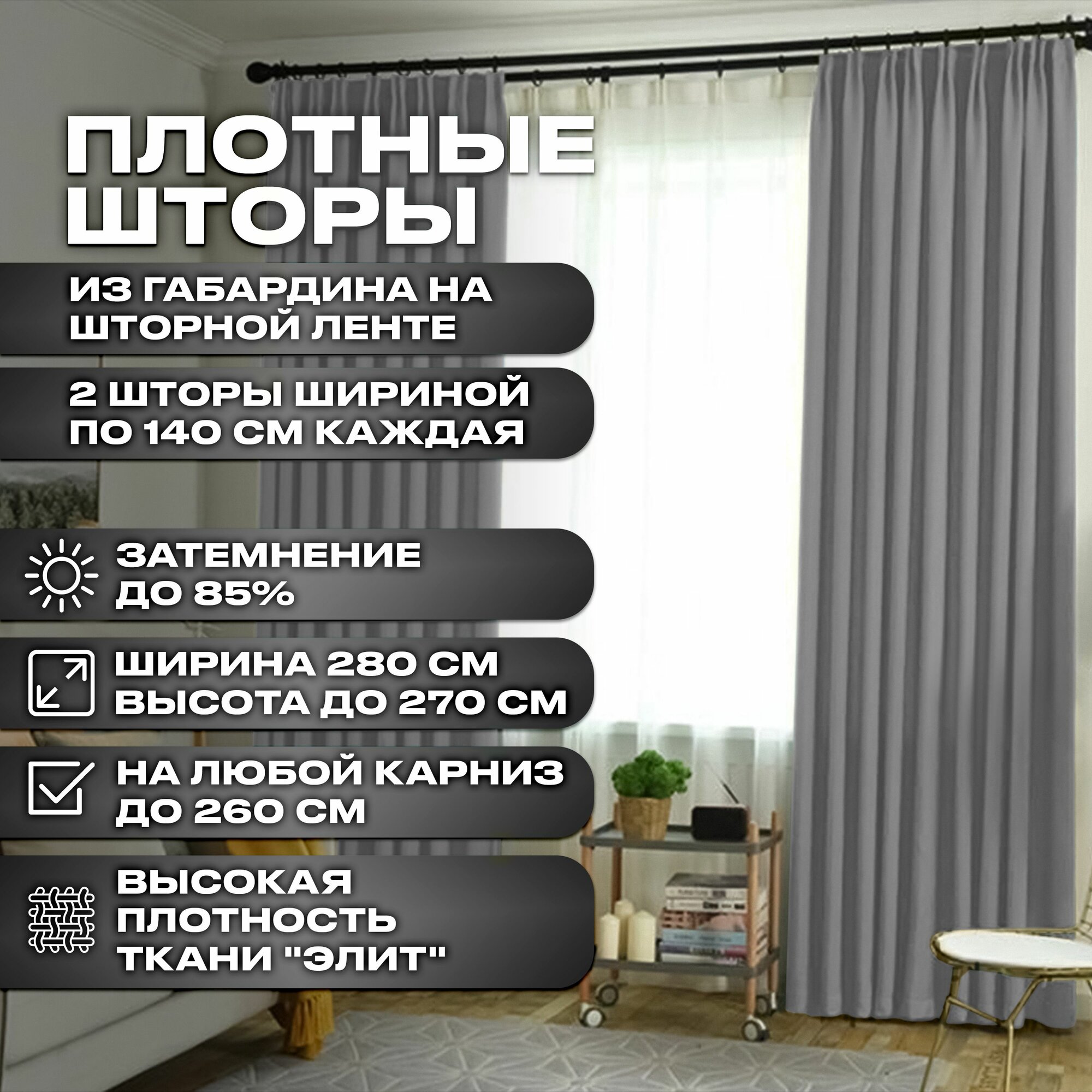 Плотные шторы из Габардина для высоких окон цвет серый 2 шторы ( шир 140см х выс 310 см)арт- ГН-1 информация: