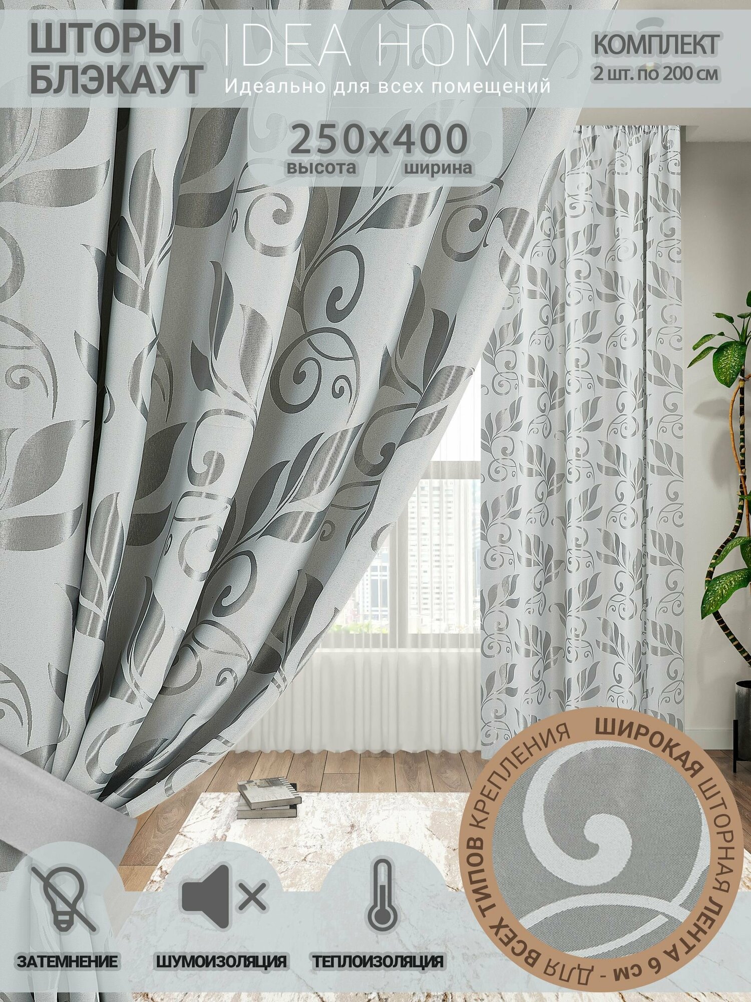 Шторы комнатные IDEA HOME/комплект из 2 шт по 200 см/ портьеры для комнаты, кухни, спальни, гостиной и дачи 250х400см/ французский жаккард/ серый 2 901 ₽