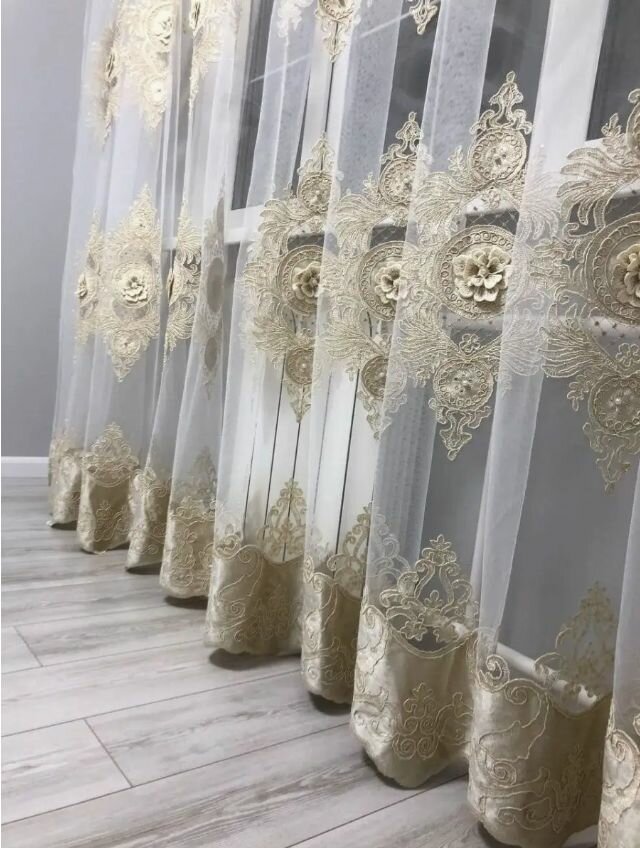 Тюль Секрет красивого окна "Бархатная вышивка", на шторной ленте, сетка, 500x280 см 6 500 ₽