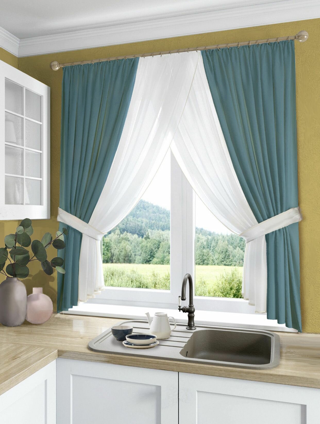 10 цен на Кухонные шторы из плотной ткани блэкаут и тюля КУ-БК-ГЕР-211 цвет бирюзовый