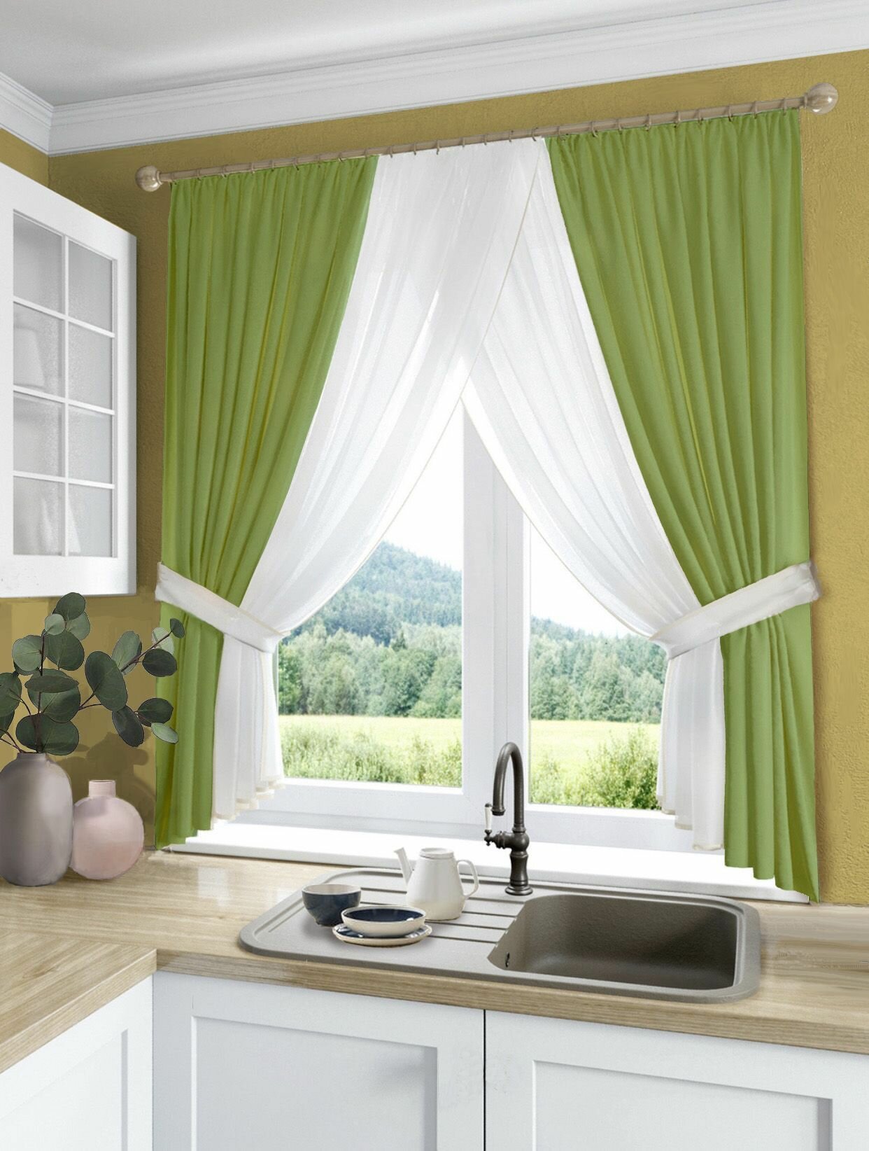 10 цен на Кухонные шторы из плотной ткани блэкаут и тюля КУ-БК-ГЕР-211 цвет салатовый