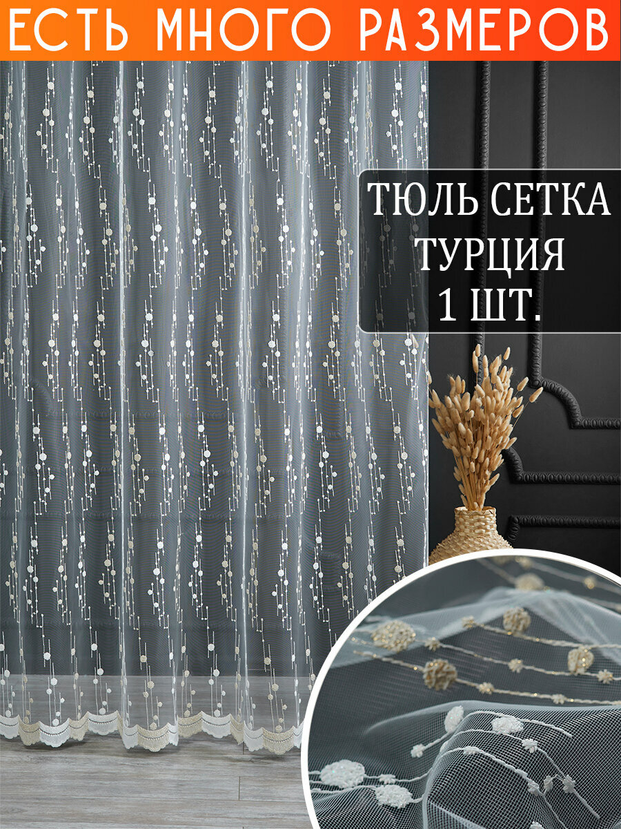 Однотонный тюль микросетка с вышивкой и люрексом 250x270 см. 1 940 ₽