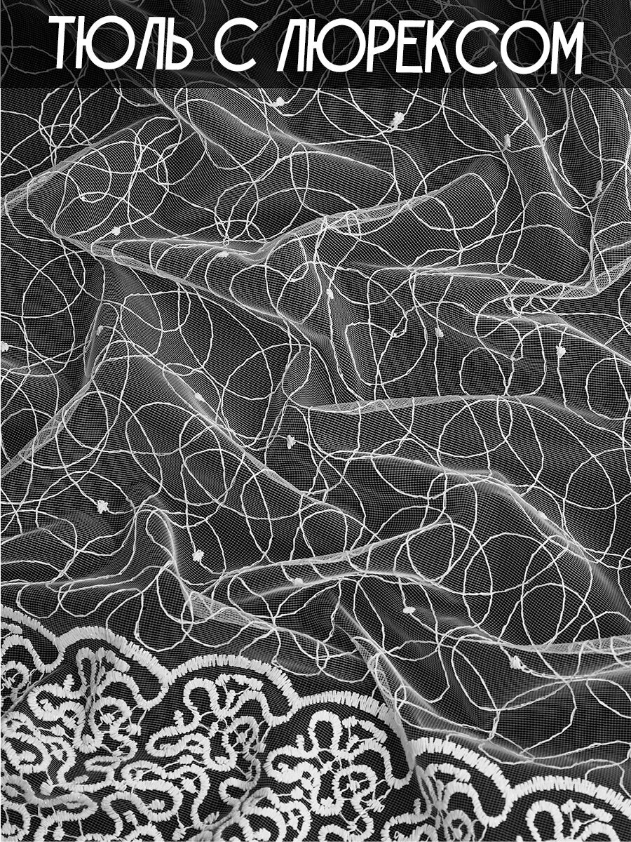 Однотонный тюль микросетка с вышивкой и люрексом 1150x240 см. 6 835 ₽