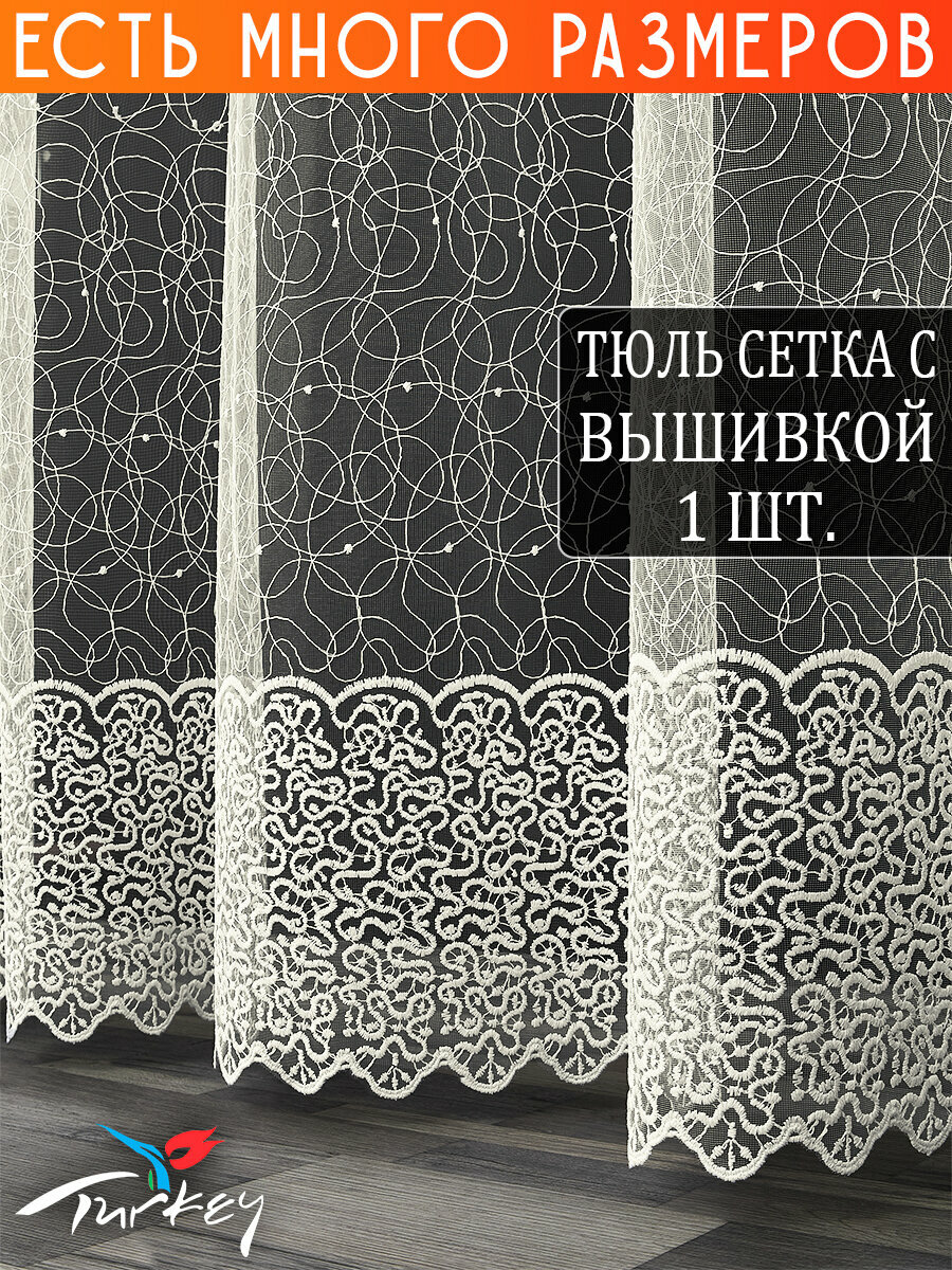 Однотонный тюль микросетка с вышивкой и люрексом 1100x260 см. 6 563 ₽