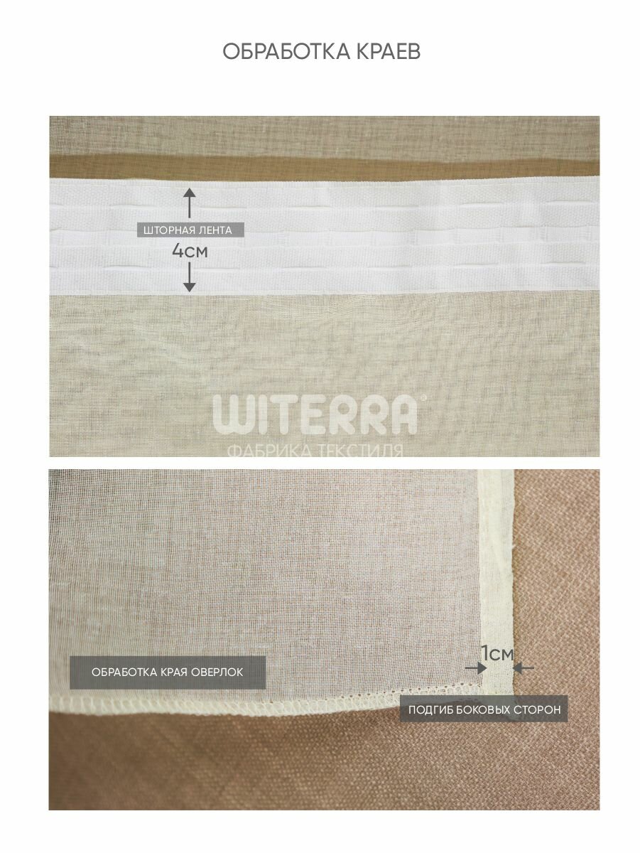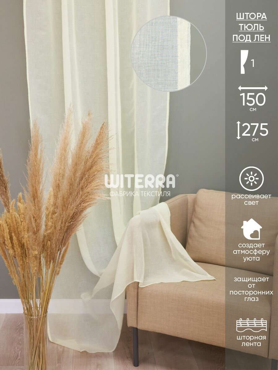 Штора тюль Witerra под лен, на шторной ленте для всех типов карнизов, 150х275 см, шампань, 1 шт. информация: