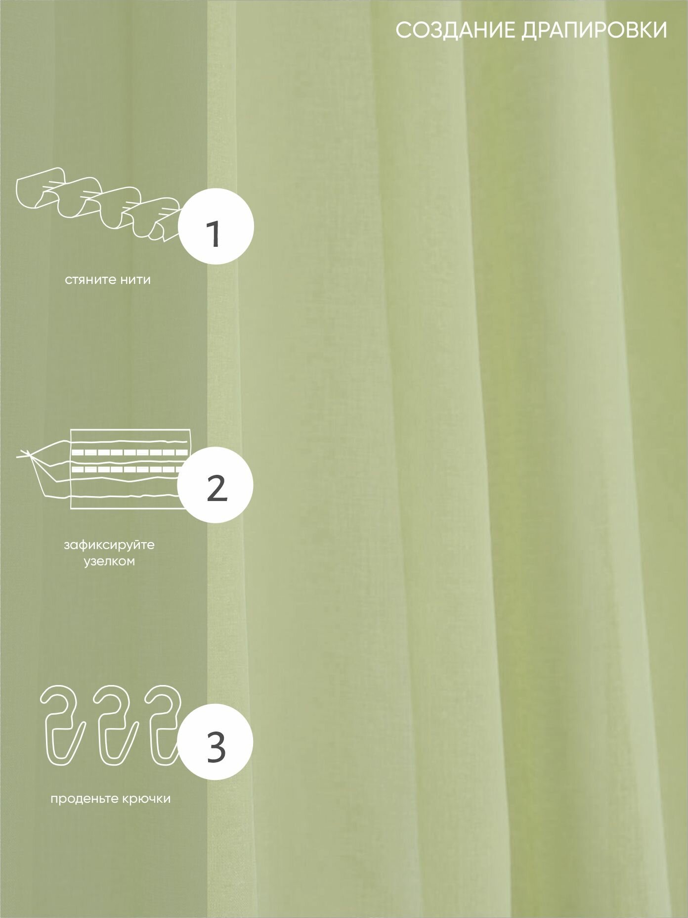 Занавеска тюль Witerra под лен, матовая, на шторной ленте для всех типов карнизов, 500х275 см, зеленая, 1 шт. информация: