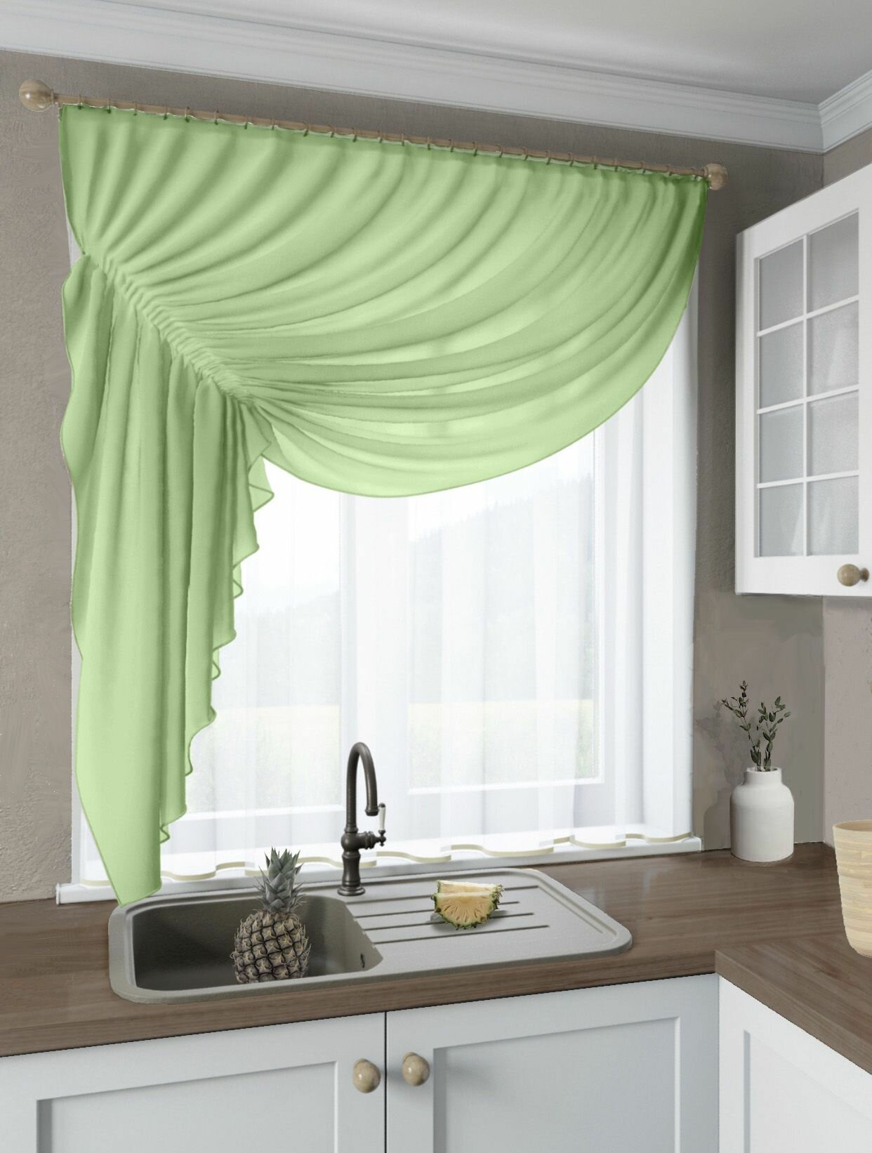 Отзывы на Кухонные шторы из тюля на ленте под крючки КУ-АГН-54 цвет фисташковый