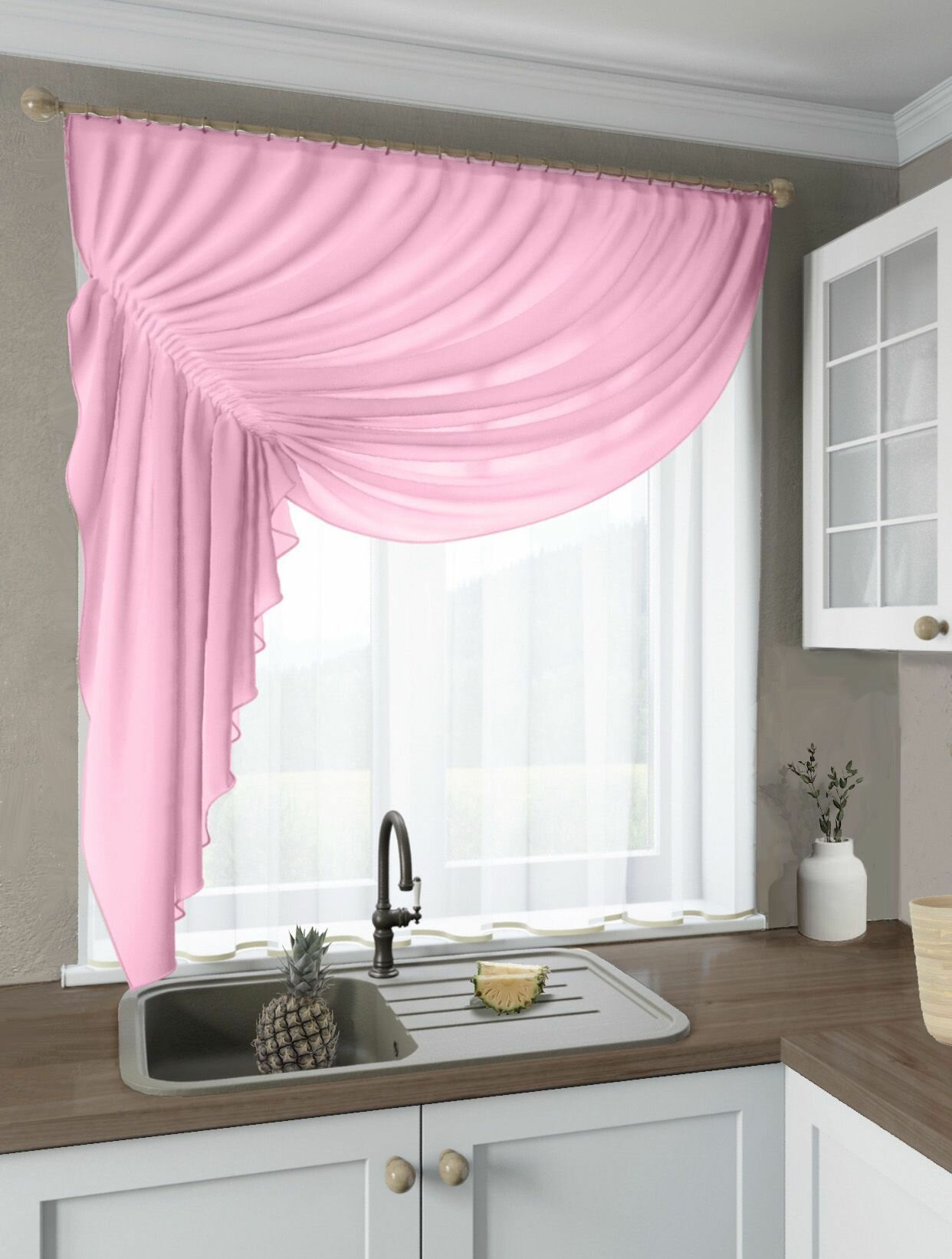 Отзывы на Кухонные шторы из тюля на ленте под крючки КУ-АГН-54 цвет розовый