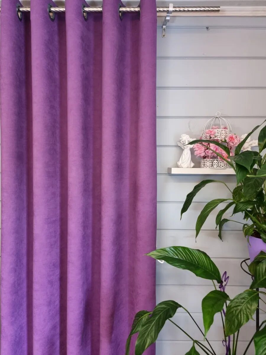 10 цен на Штора "Канвас", полиэстер, на люверсах, фиолетовая, 150 см x 210 см