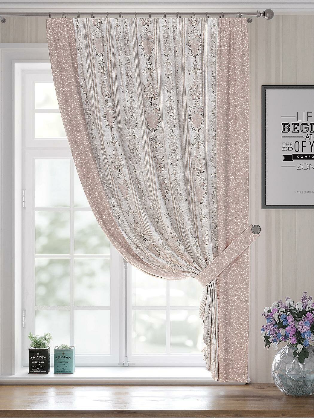 Комплекты штор AT HOME Лорфикс высота 180 см, ширина 150 см, крепление - шторная лента, Бежевый информация:
