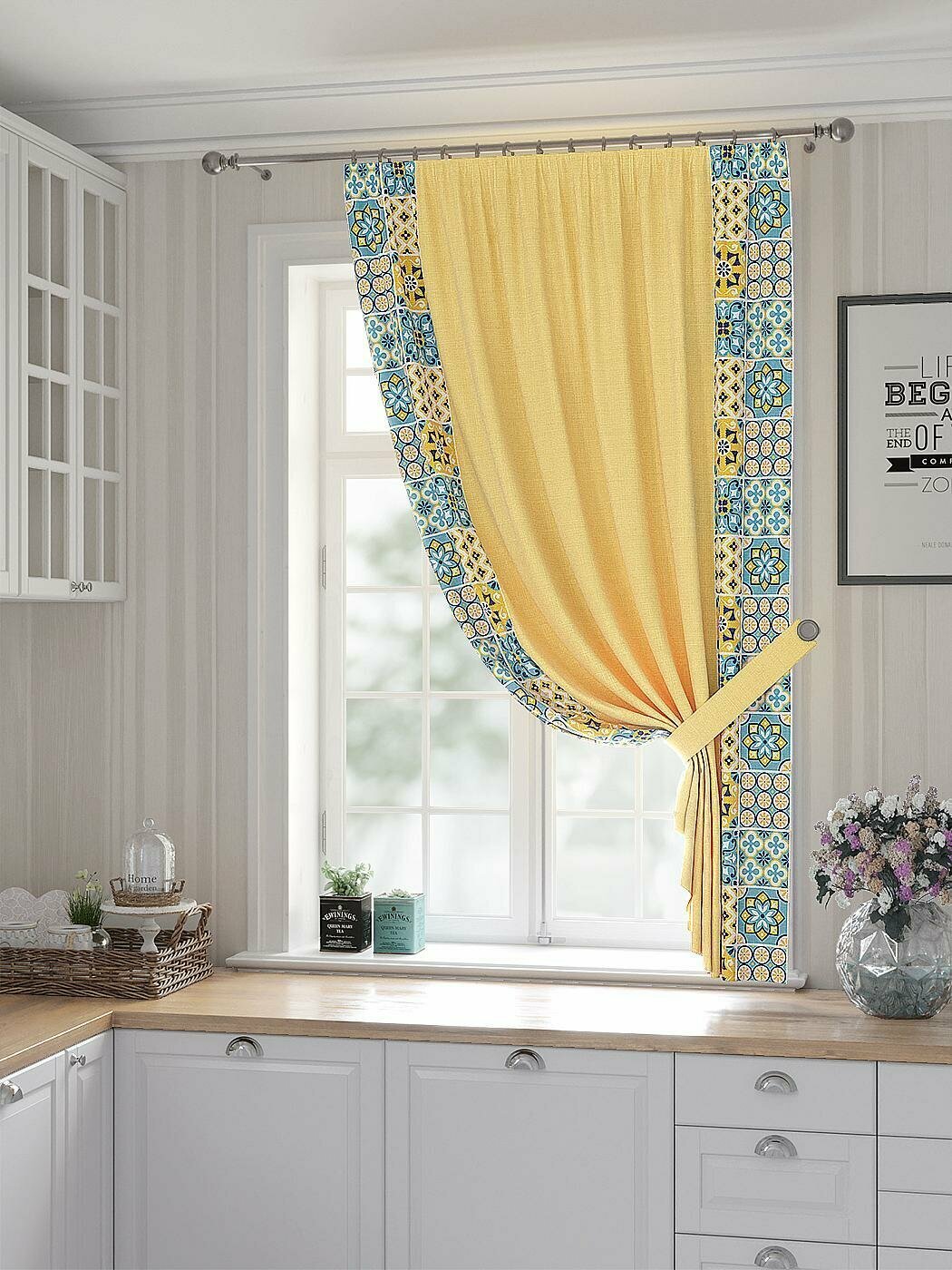 Комплекты штор AT HOME Тименирес (желтый) высота 180 см, ширина 150 см, крепление - шторная лента, Белый информация: