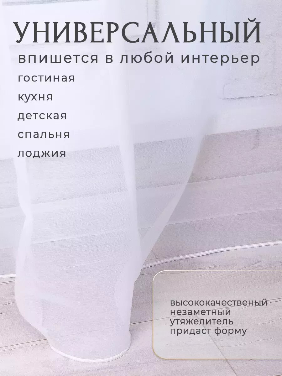Тюль Мир Штор, под лен с утяжелителем, белый, на шторной ленте, ширина 6м информация: