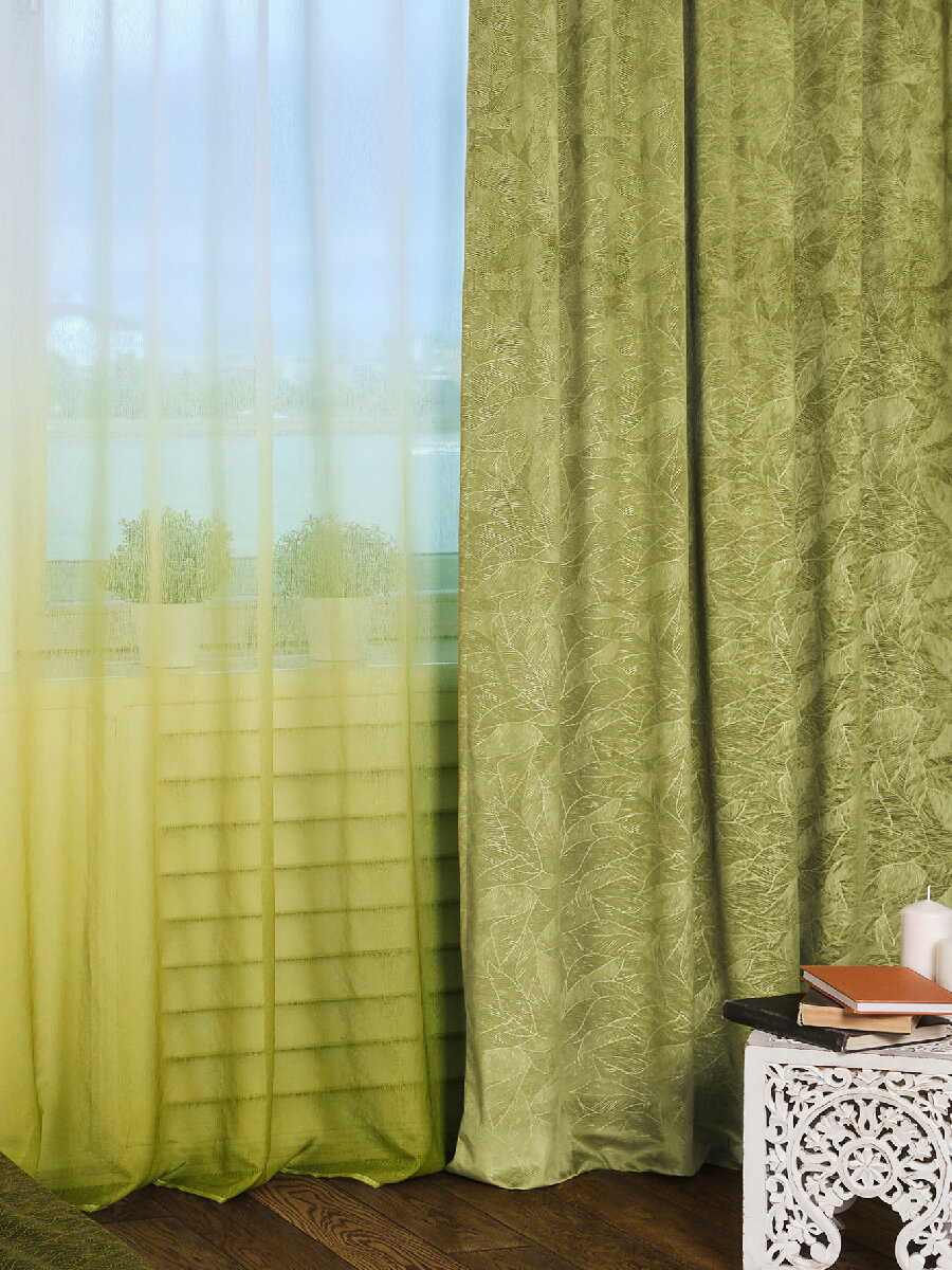 10 цен на Штора для комнаты спальни и гостиной зеленая готовая интерьерная на шторной ленте 140х260 см, Narassvete