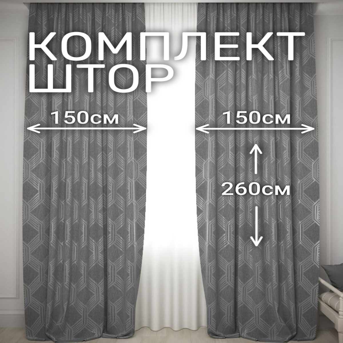 Шторы 2 шт. по 150см, Комплект штор Соты ширина 300см, высота 260см, графитовый информация:
