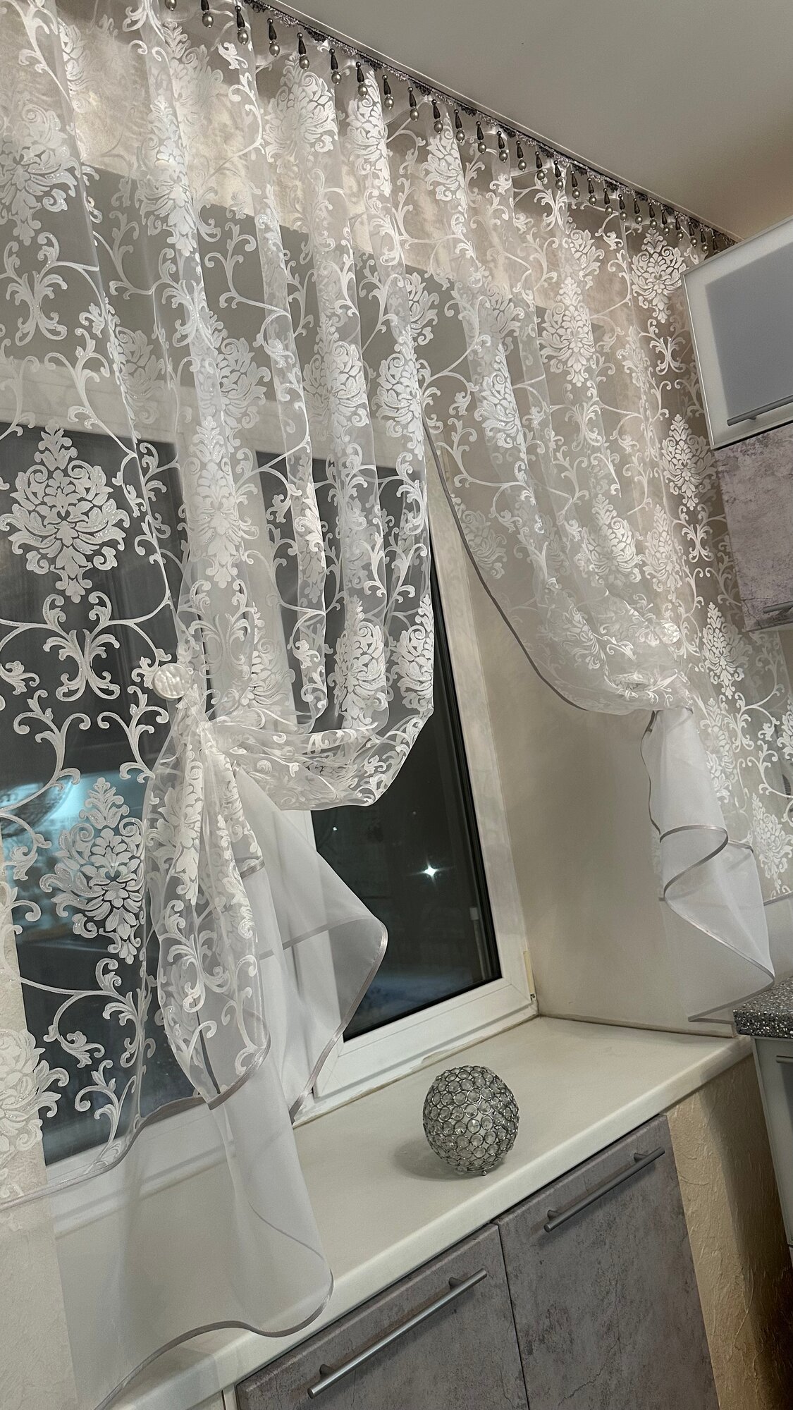 10 цен на Кухонная шторка белые вензеля, ширина 3м, высота 1,7м