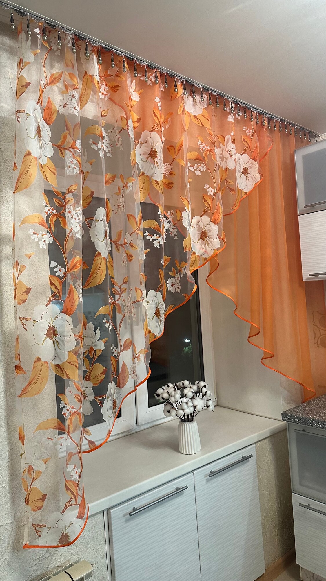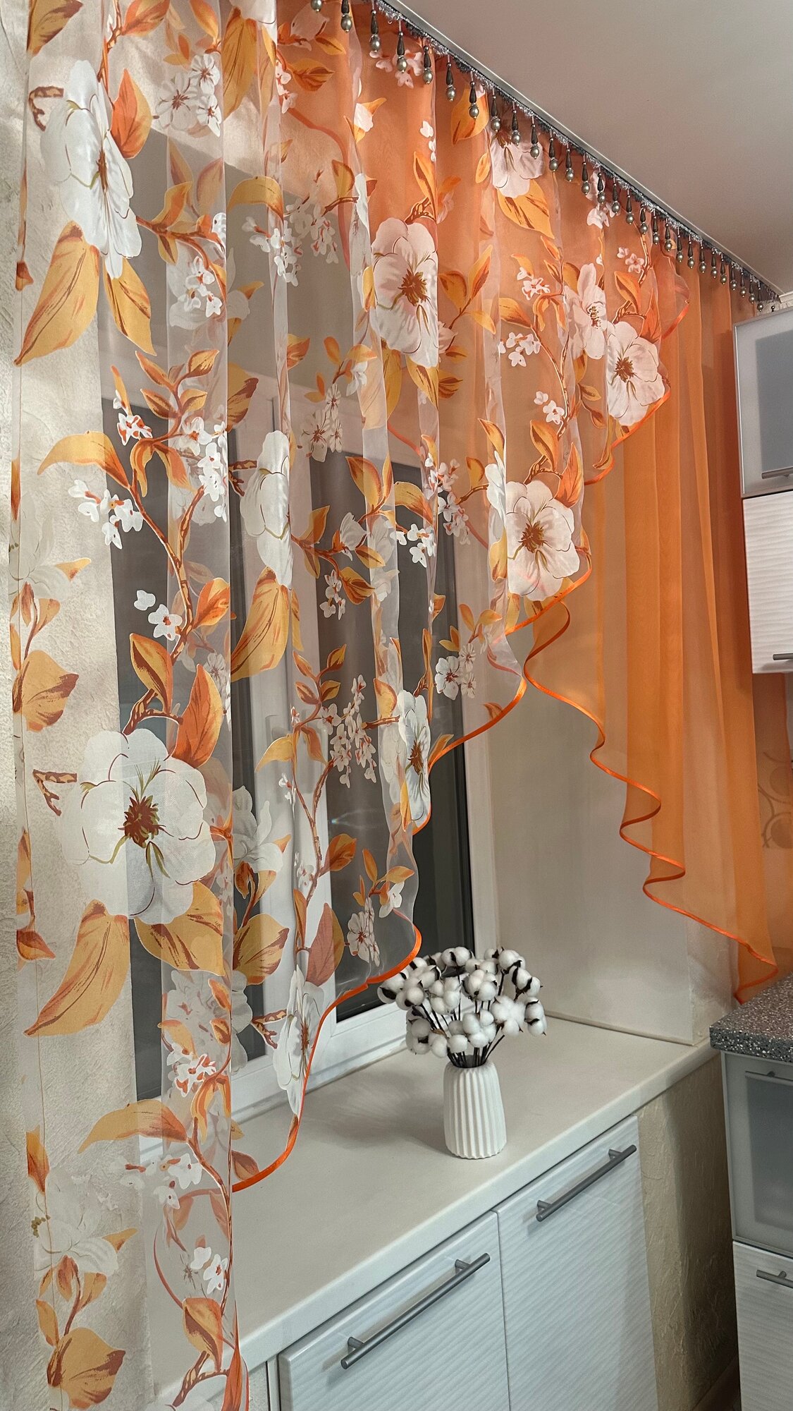 10 цен на Кухонная шторка оранжевые цветы, ширина 3м, высота 1,7м