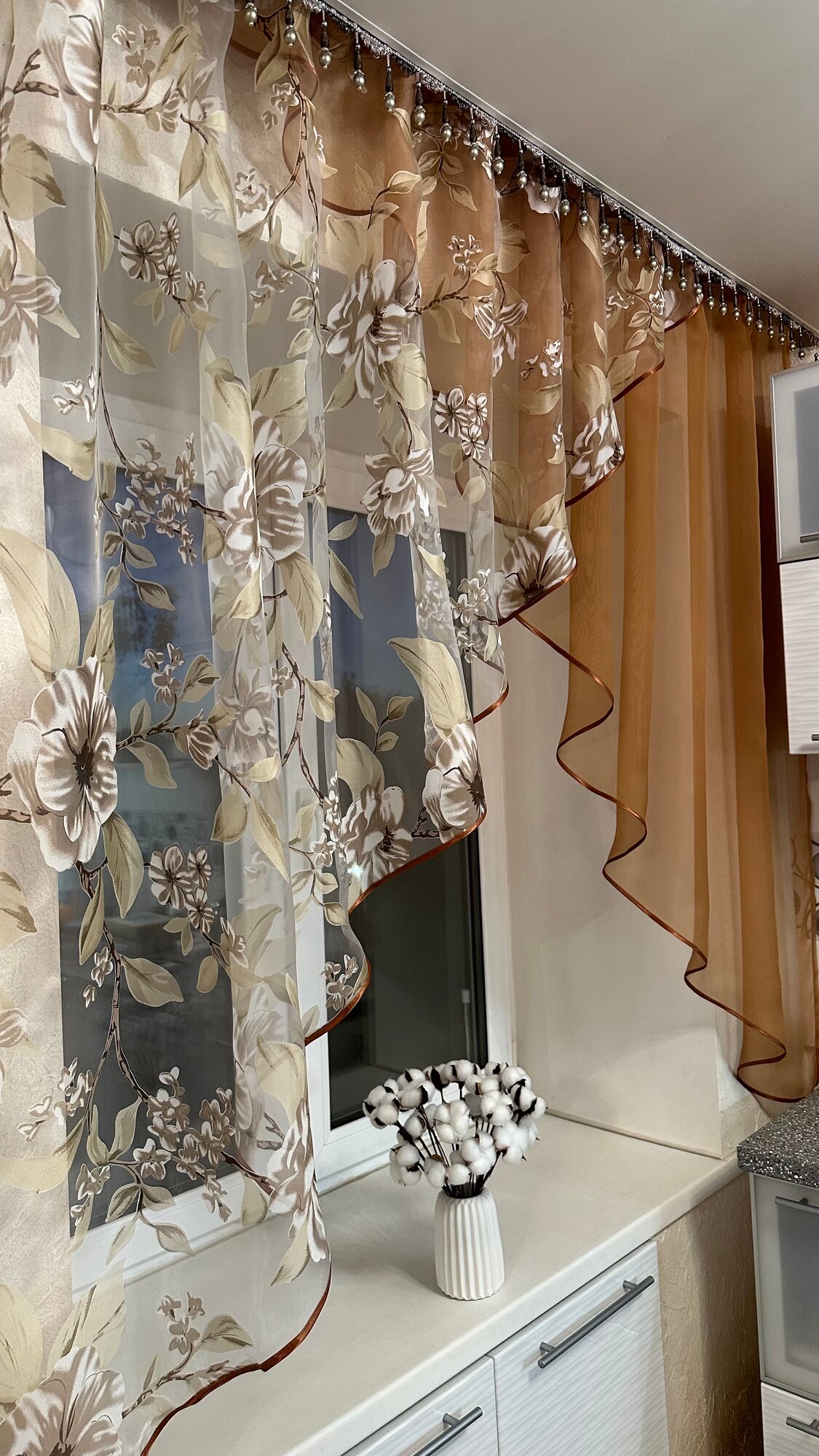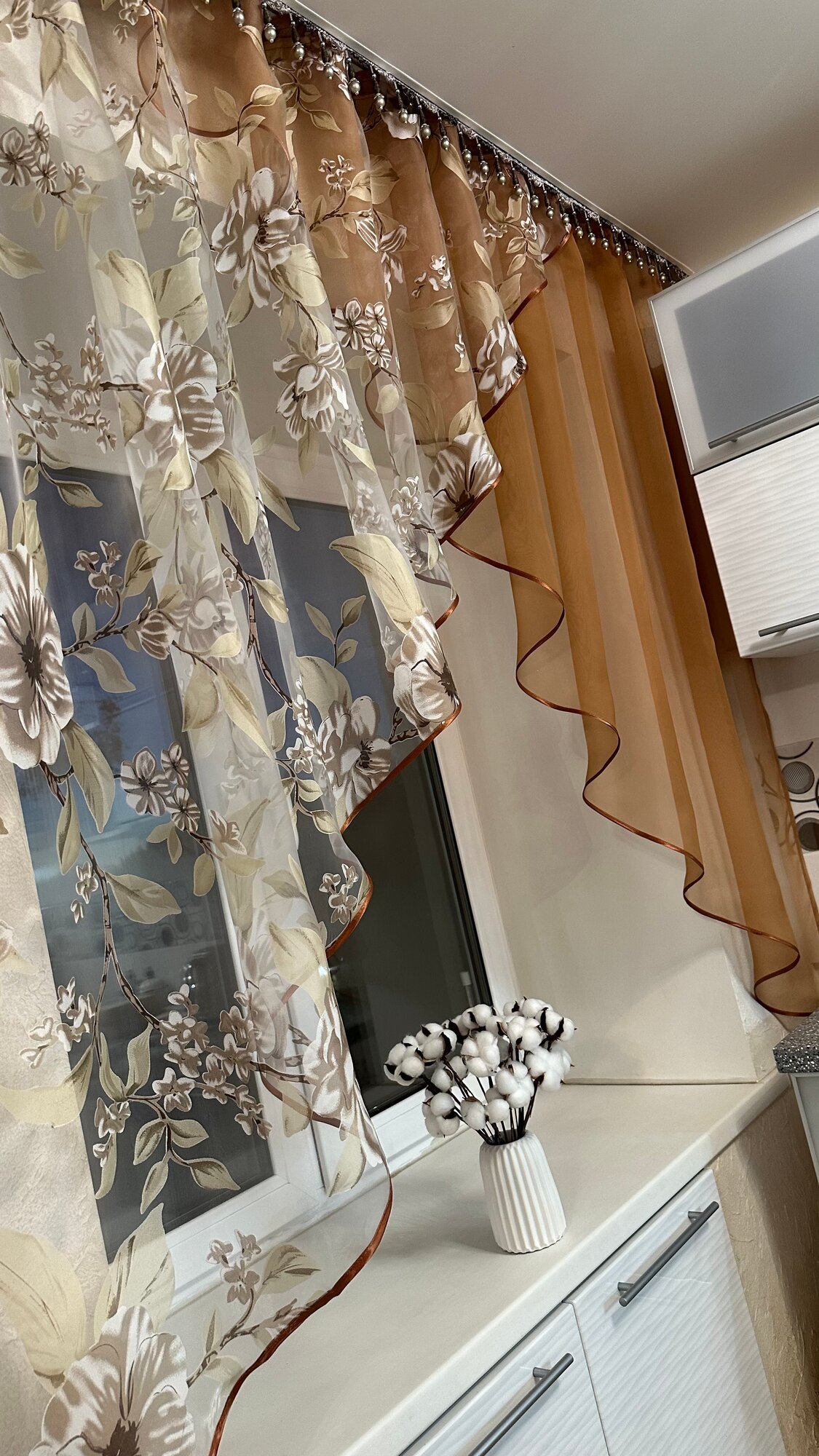 Кухонная шторка цветы бежевые, ширина 3м, высота 1,7м информация: