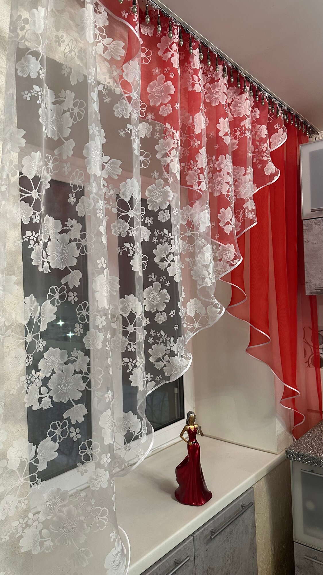 Кухонная шторка красная, ширина 3м, высота 1,7м информация: