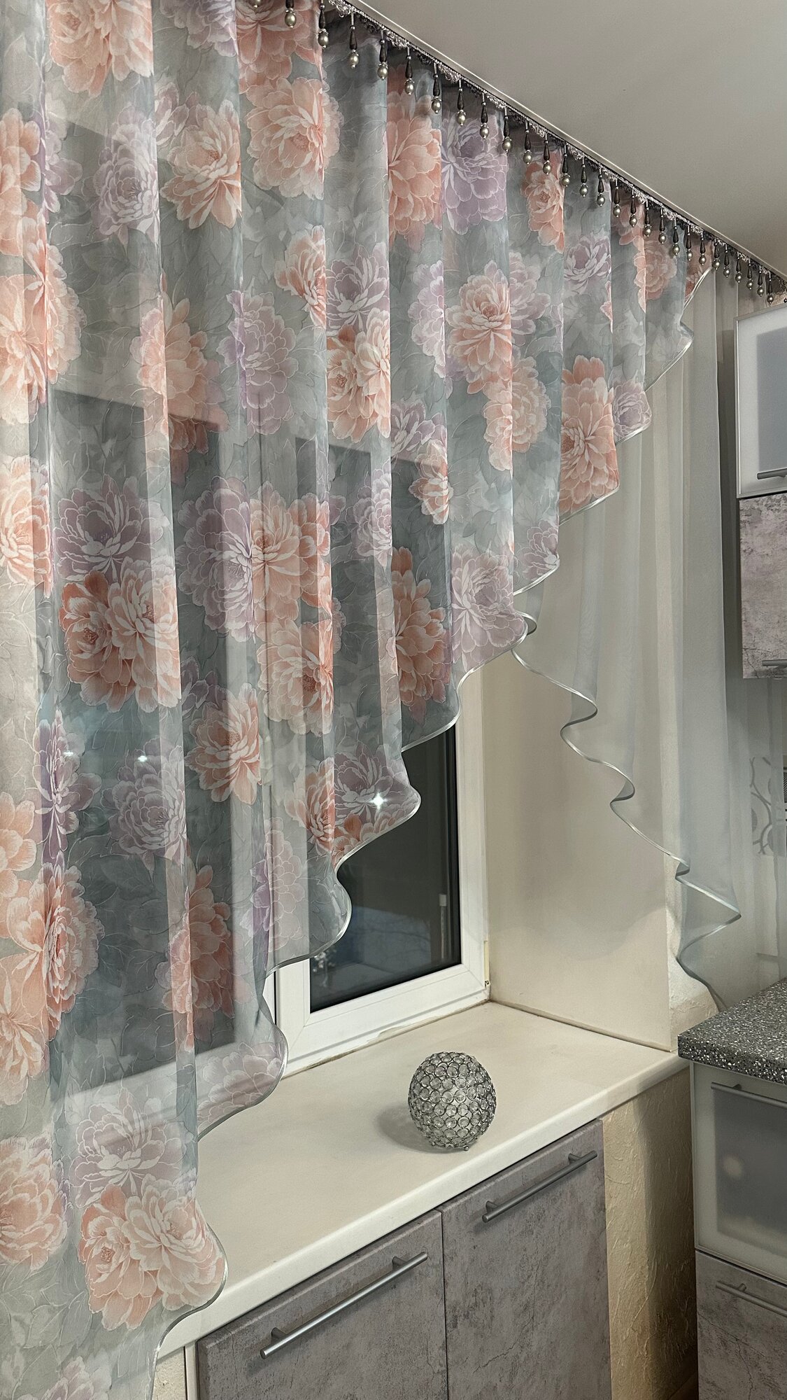 Кухонная шторка пионы персик, ширина 3м, высота 1,7м информация: