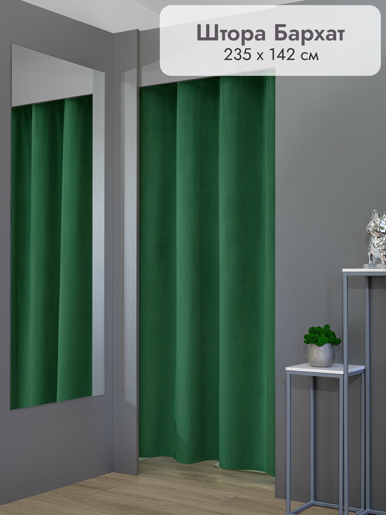 Штора на люверсах в примерочную Леомебель бархатная 235х142 1 шт Зеленый информация: