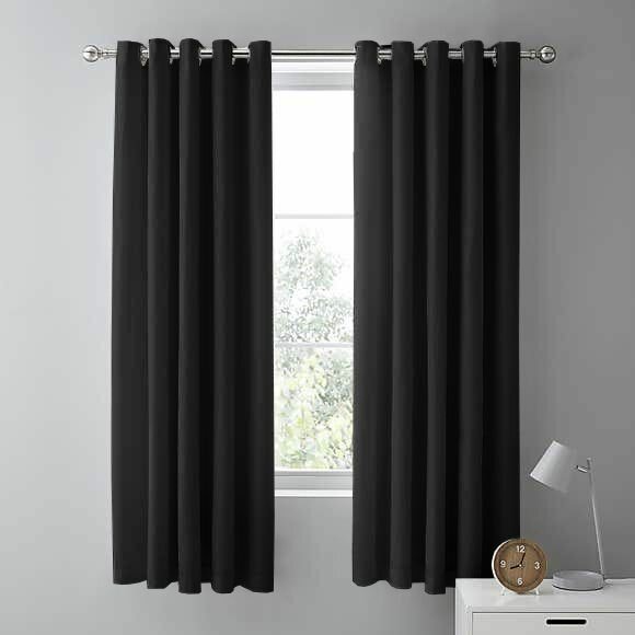Короткие шторы блэкаут на люверсах для кухни - 2 шторы цвет черный (шир 135 см. х выс 190 см.) арт БК-ППР-КЛ-1 информация:
