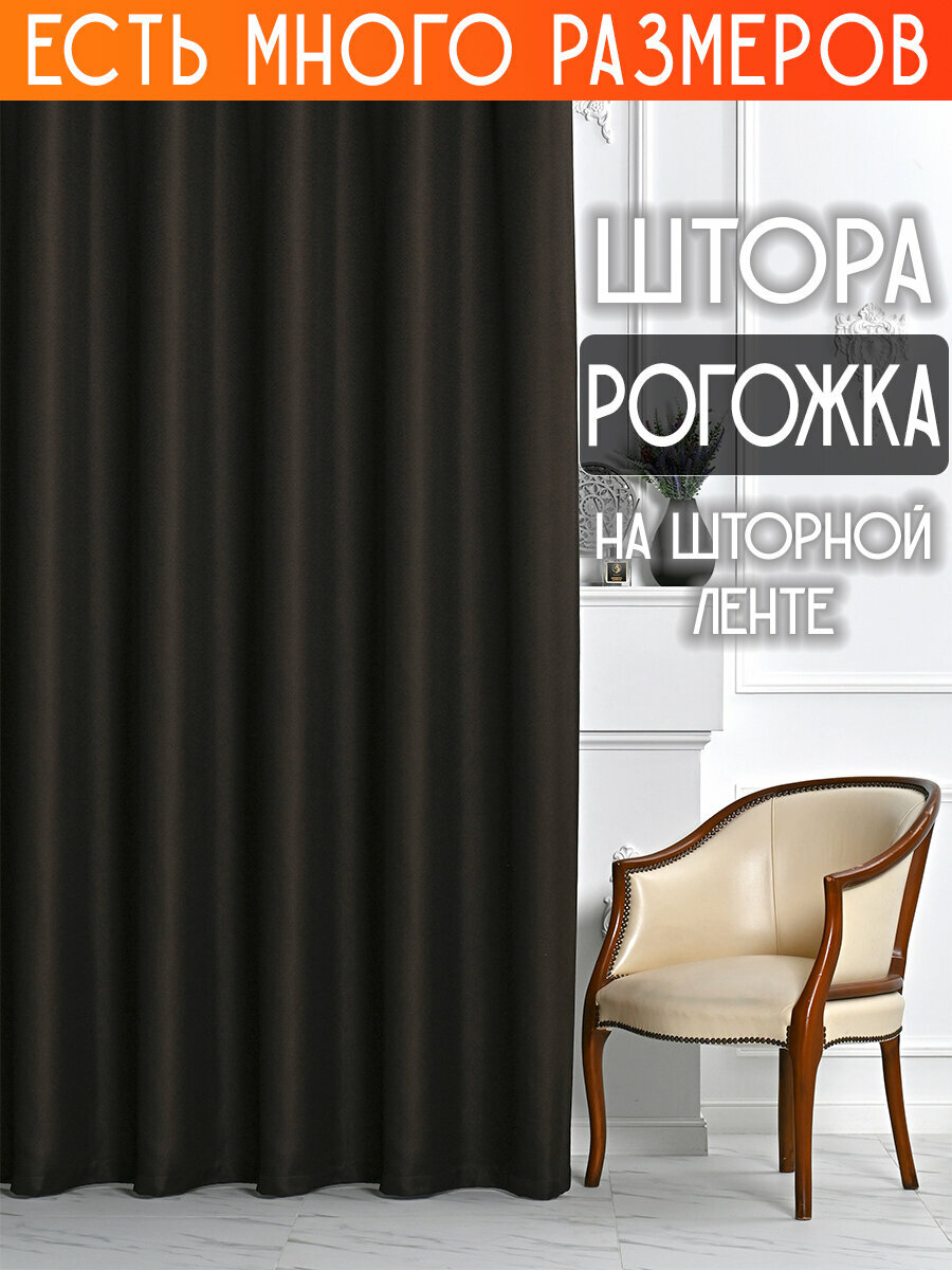 Готовая плотная интерьерная штора(портьера) рогожка без рисунка 150x270 см.(1шт.) со шторной лентой 2 129 ₽
